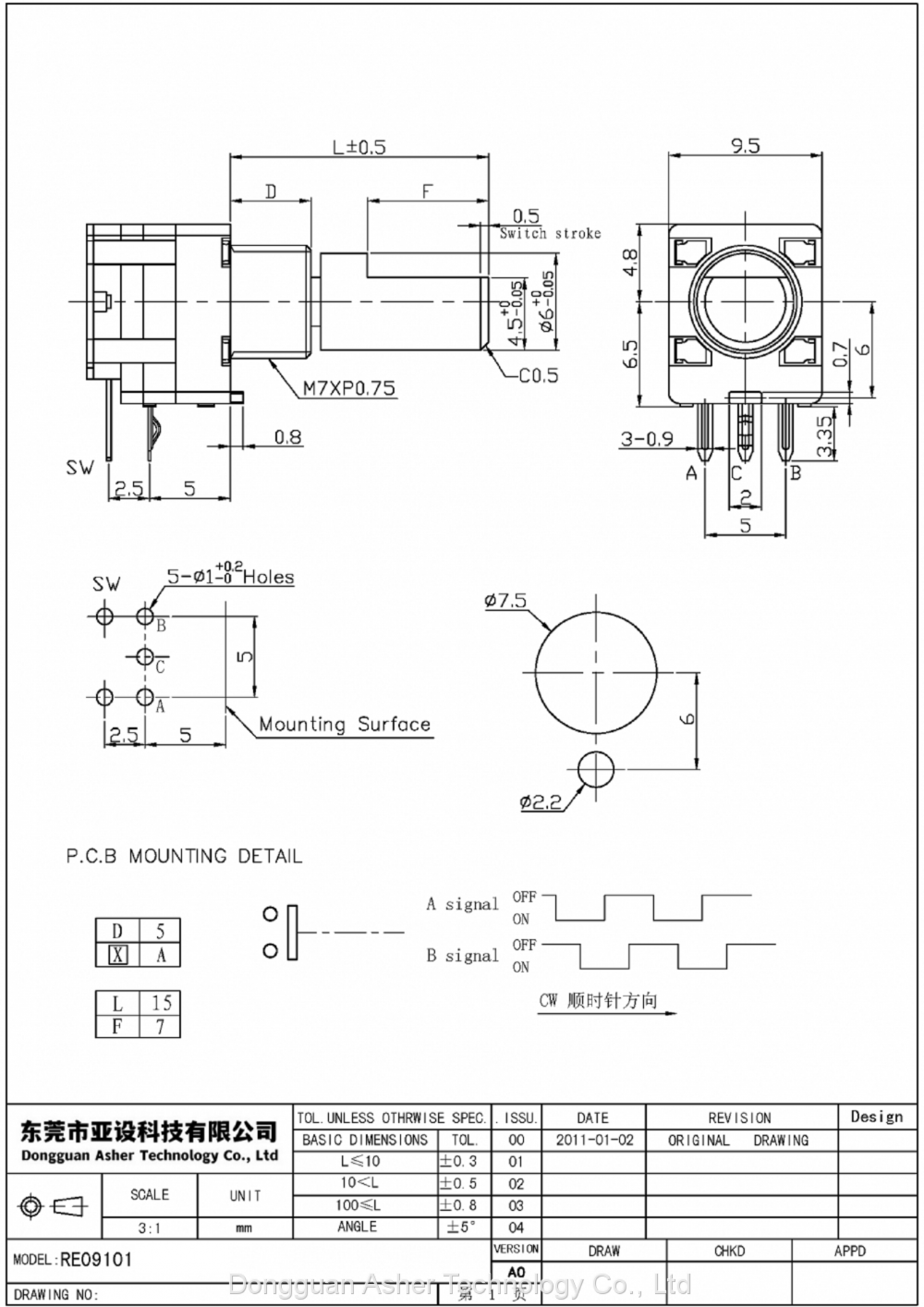 LJV RE09101AB-V01-0026 Incremental Rotary Encoder, 10 Pulses, 20 Positions, Horizontal, With Press Switch, Shaft Length 15mmNegotiableMOQ: 1000 Pieces