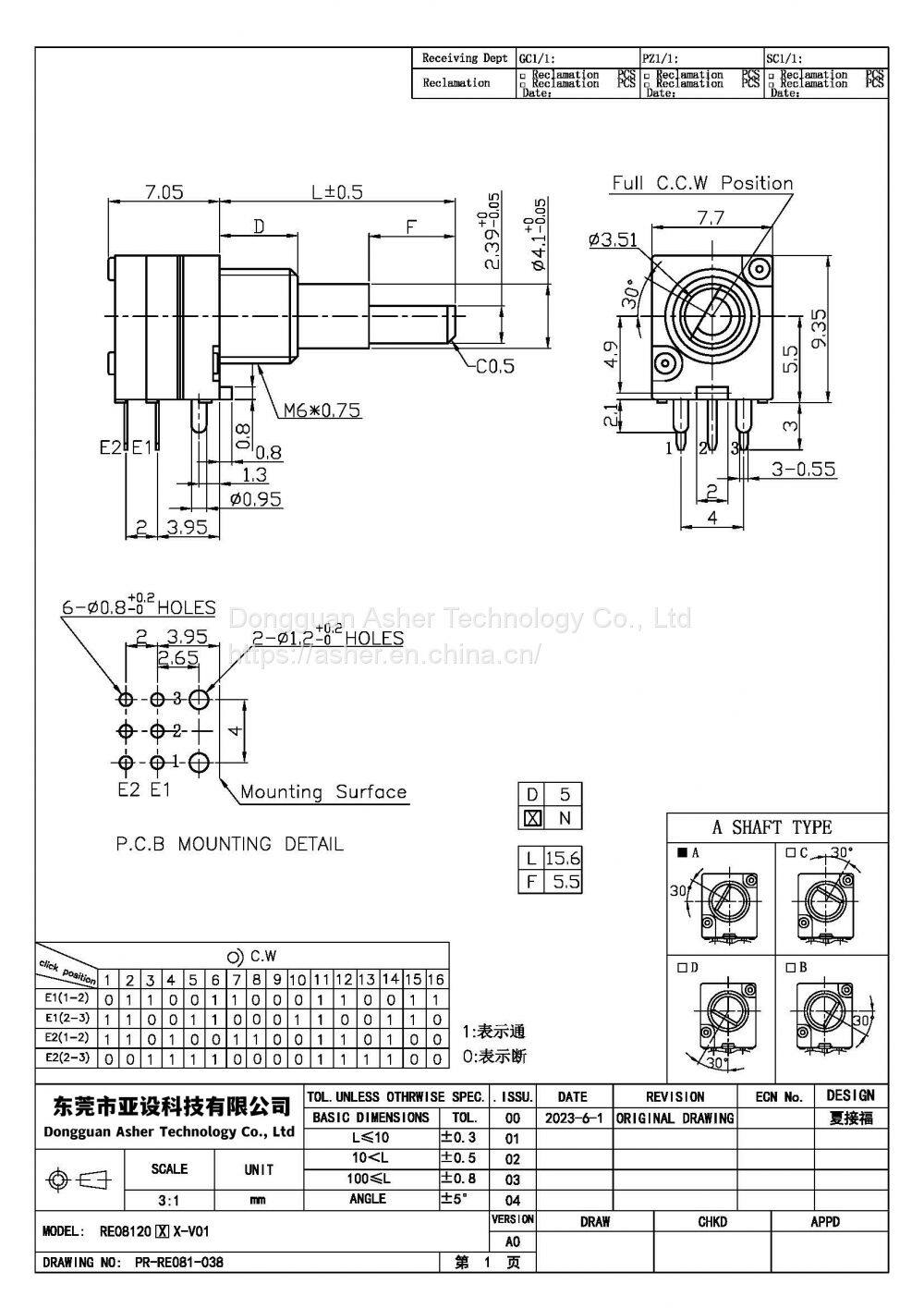 RE08 of 8mm Metal Shaft Sealed Logic Encoder With Switch, Horizontal Type, 16-Channel Encoder for Walkie-Talkie
