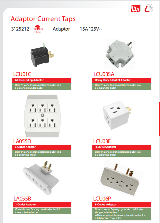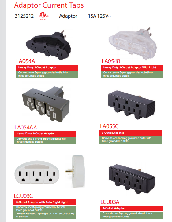 Home > Products > Adaptor Current Taps > Adaptor Current Taps 15A 125V~