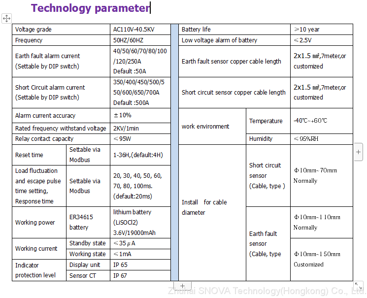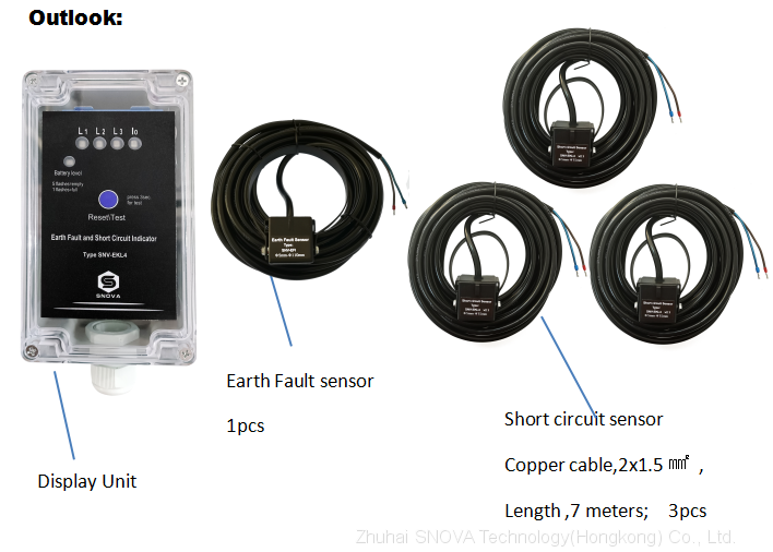 SNV-EKL4 v2.1, Earth fault and short circuit indicator, it Widely used in various ring cabinets, high/ Medium or low -voltage switch gear and cable branch box in power system, can accurately and reliably detect the fault section and fault type of power grid in the Low/medium voltage network. The use of cable type grounding fault and short circuit indicator is an efficient way to check cable fault, and is an effective way to improve the operation level of distribution network and the efficiency of fault handling. The design uses electromagnetic induction, and single chip microcomputer control technology to make fault alarm with high accuracy and strong anti-interference ability.