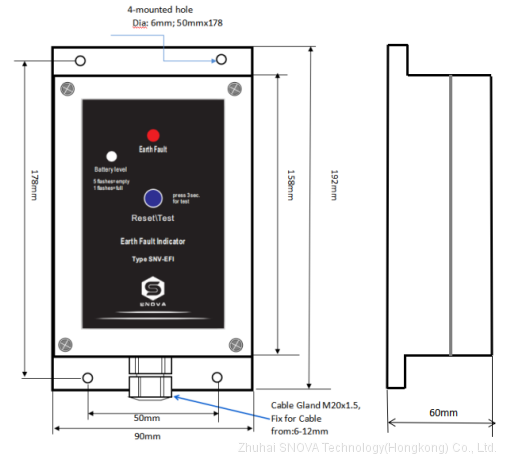 SNV-EFI earth fault indicator, it Widely used in various ring cabinets, high/ Medium or low -voltage switch gear and cable branch box in power system, can accurately and reliably detect the fault section and fault type of power grid in the Low/medium voltage network. The use of cable type grounding fault indicator is an efficient way to check cable fault, and is an effective way to improve the operation level of distribution network and the efficiency of fault handling. The design uses electromagnetic induction, and single chip microcomputer control technology to make fault alarm with high accuracy and strong anti-interference ability.