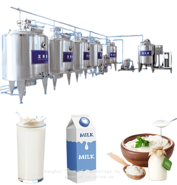 The entire production line includes milk collection, blending system, homogenization sterilization system, fermentation system, cooling system, filling system, CIP system.