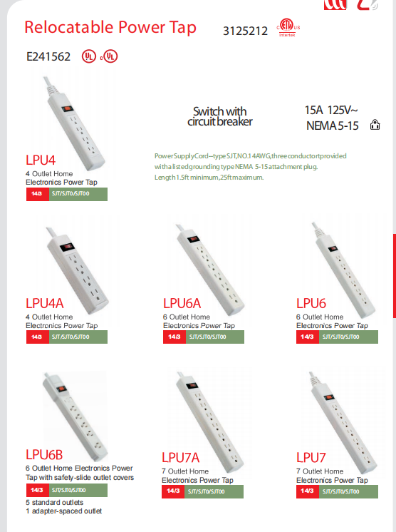 Home > Products > North America Power Cords > NEMA5-15P 15A 125V~ Power Strip