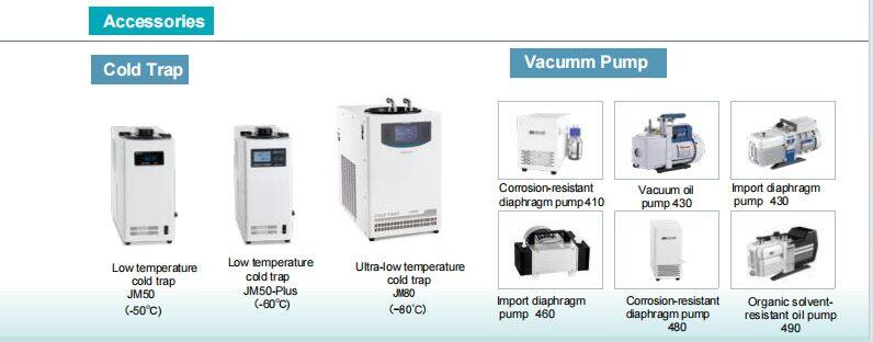 The cold trap cools rapidly:Reaching the ultimate temperature within 10 minutes and fully pre-cooling within 20 minutes Automatic alarm for inadequate vacuum, ensuring sample safety Automatic vacuum release after power outage to protect samples Specially designed intake filtration components to keep samples away from contamination