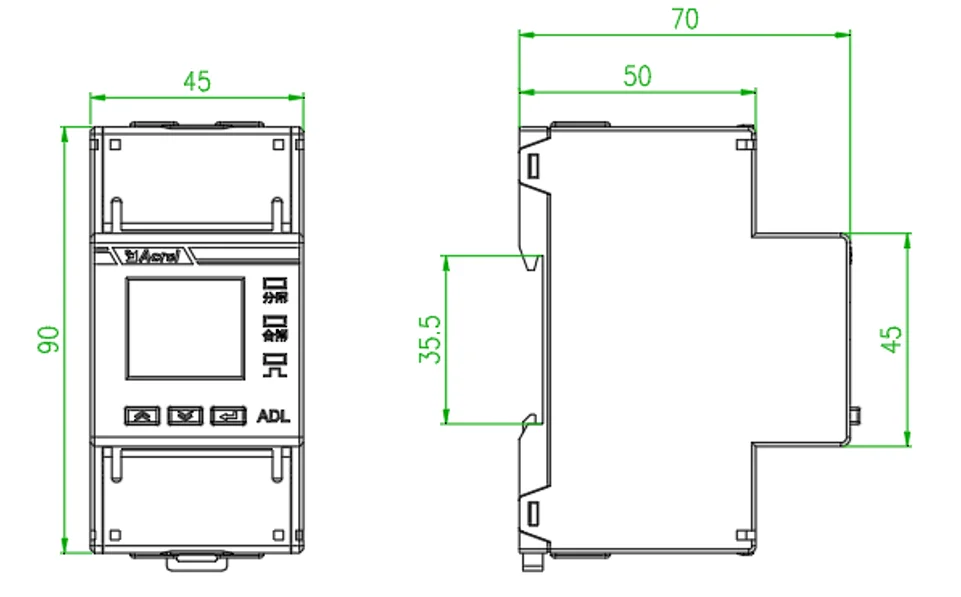 ADL200 single-phase electronic watt-hour meter is mainly used to measure single-phase active energy in low-voltage networks. It can also measure voltage, current, power and other electricity. It can also be equipped with RS485 communication function to facilitate users to monitor, collect and manage electricity consumption. It can be flexibly installed in the distribution box to realize the sub-item electric energy measurement, statistics and analysis of different areas and different loads. The product meets the requirements of the national standard GB/T17215.321-2008 and the enterprise standard Q31/0114000129C035-2017 "Enterprise Standard for Rail Mounted Electric Energy Meters".