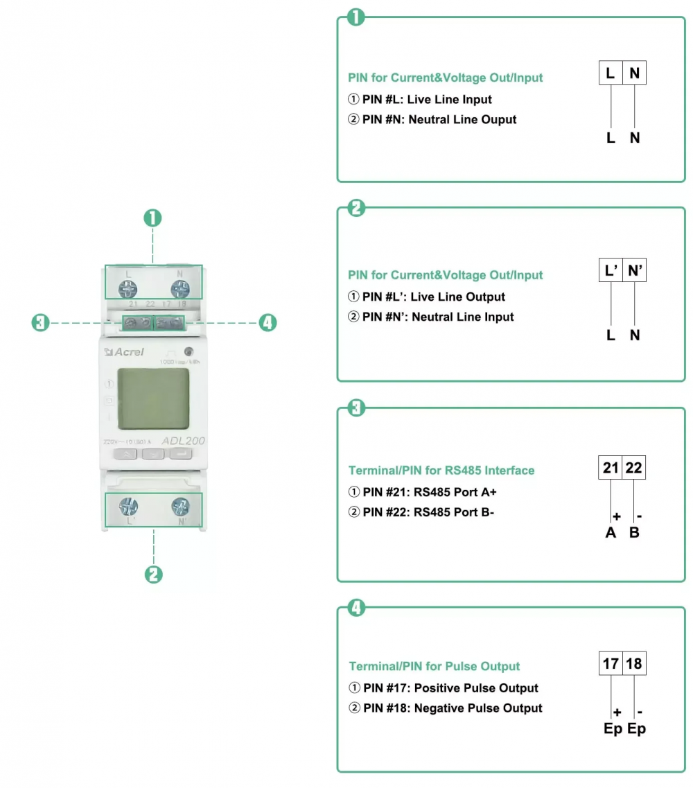 Acrel ADL200-NK/F Single-phase Smart Energy Meter Pre-paid Control, Load Control, Time Control and RS485 Communication.