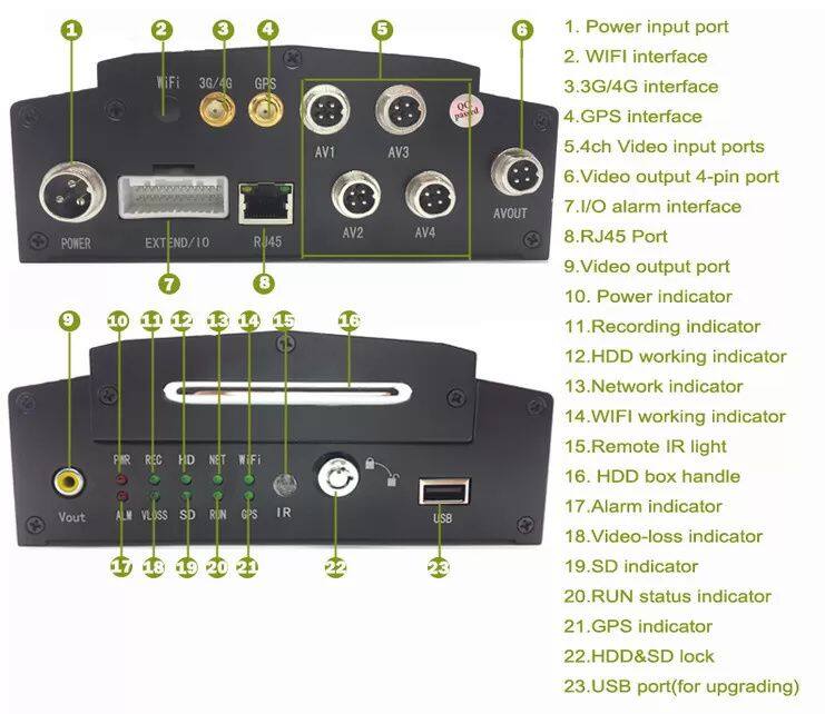 | 8CH Alarm inputs(Door Open,Light,Turn direction,brake,reverse etc),can linkage kinds of alarm; |