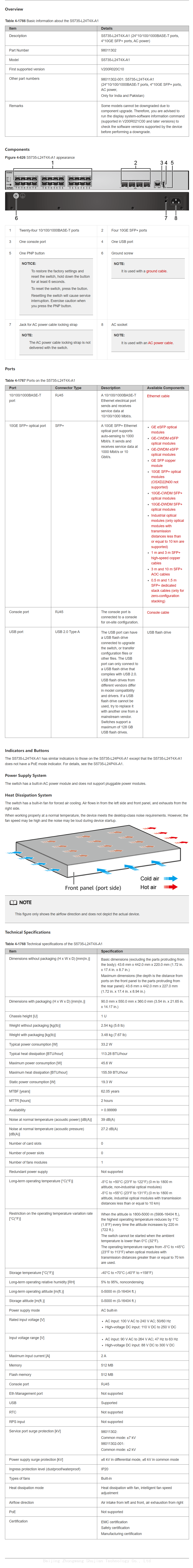S5735-L24T4X-A1 24*10/100/1000BASE-T Ports, 4*10GE SFP+ Ports, AC Power