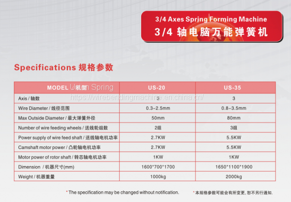 1. US-20 computer spring forming machine adopts Taiwan computer control system and Japanese imported servo motor, with convenient and fast operation, high speed and high precision