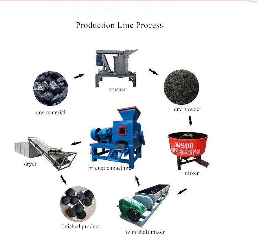 Briquettes Production Plant is mainly used to briquette charcoal leftover, small pieces of charcoal, charcoal waste, etc. and make them be fully used to increase its economic value. The final briquette shape and size both can be customized from 25-60mm with oval, pillow and square shape as well as other favorite shapes in market. according to special requirement. In addition, the raw material range is very widely, like coal powder, fertilizer, salt, iron powder, and gypsum, chrome, copper, etc.