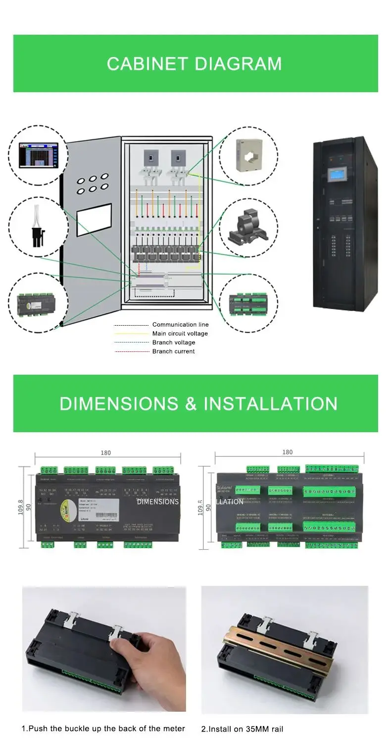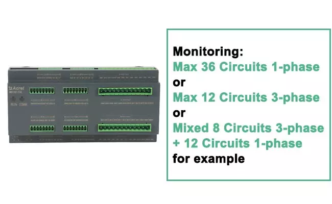 Multiple Branch Circuits Metering ● Both 1-phase&3-phase Metering ● Max 36 circuits 1-phase ● Max 12 circuits 3-phase ● Mixed 8 circuits 3-phase and 12 circuits 1-phase for example | ![]() |