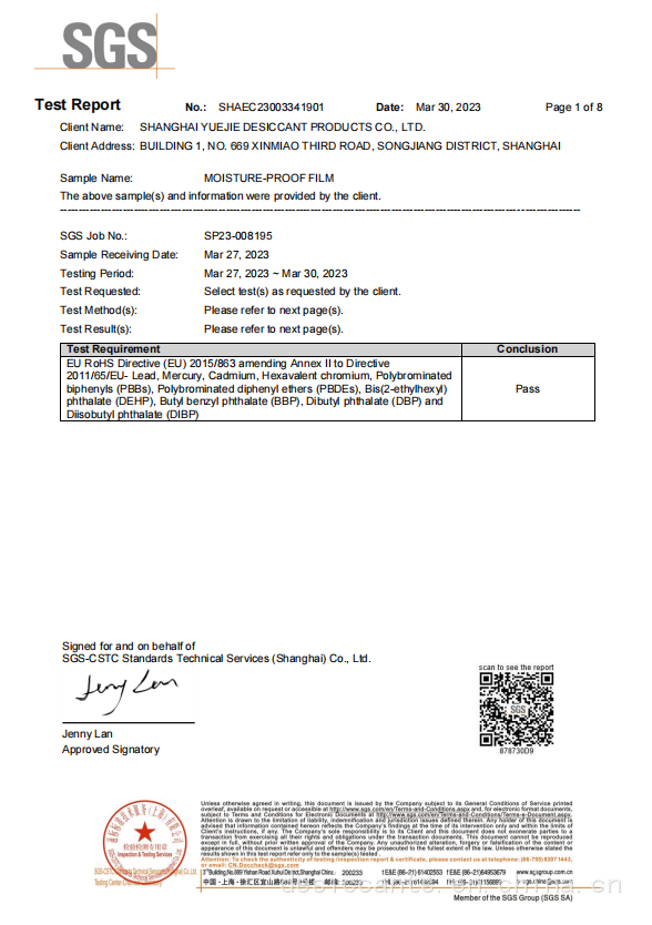 China Fiber Desiccant Card With ROHS SDS Certificate