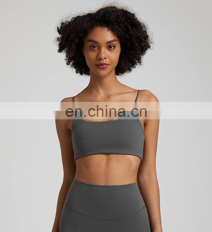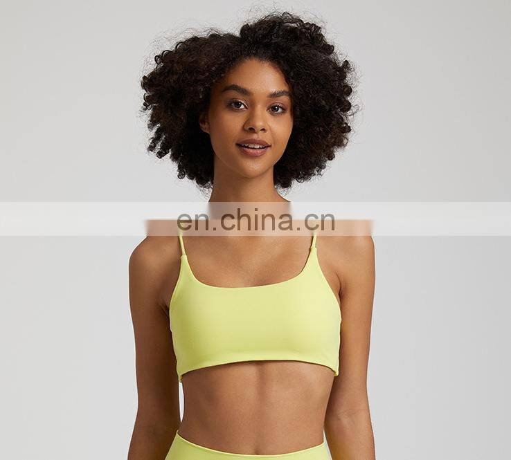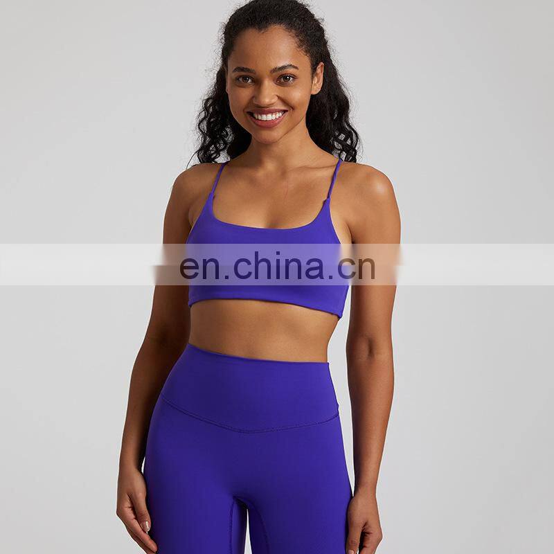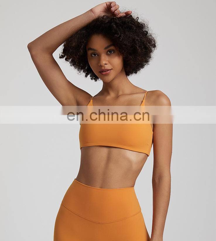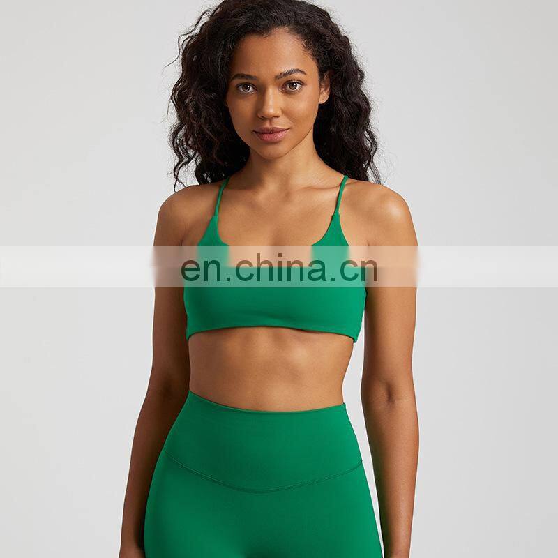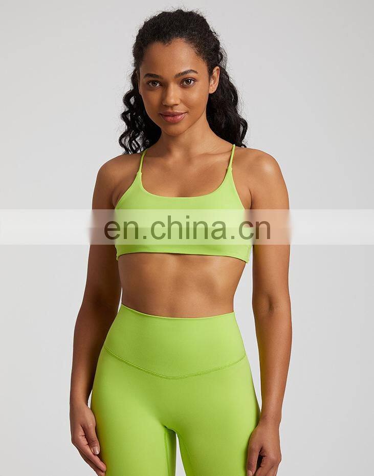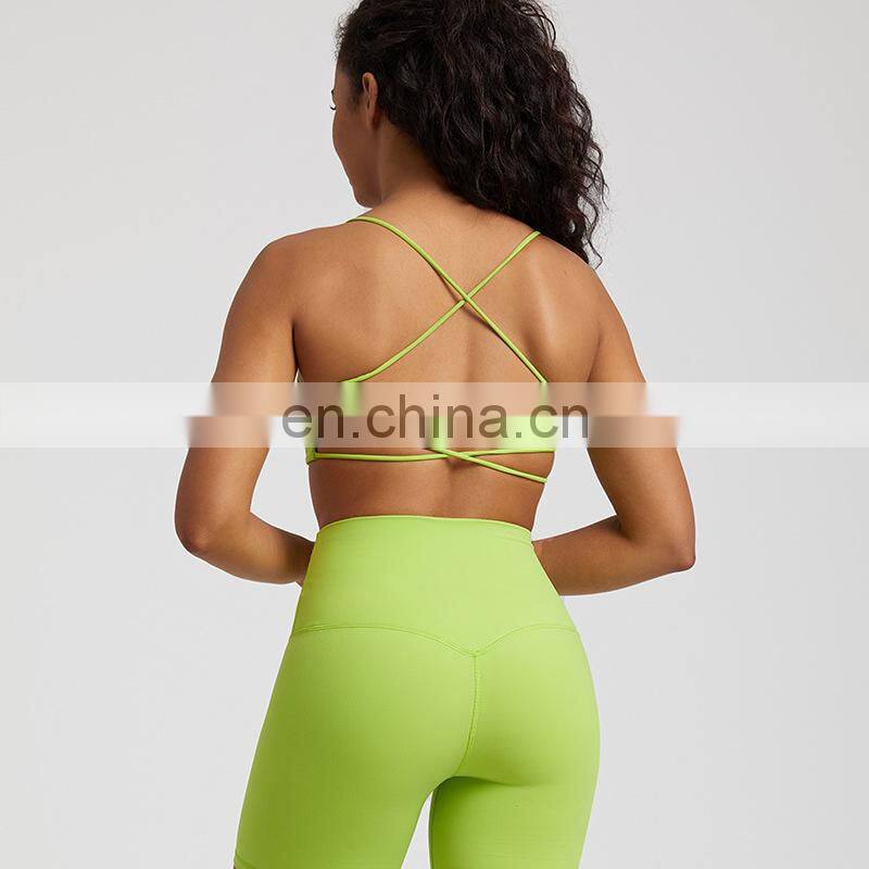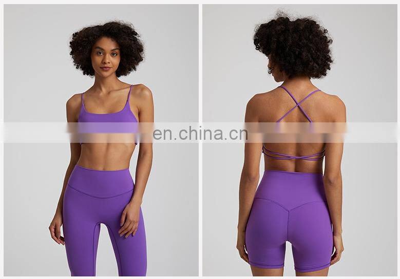 Summer New Thin Straps Sexy Padded Cross Back Open Back Sports Gym Fitness Wear Workout Soft Nude Feeling Women Yoga Bra Top