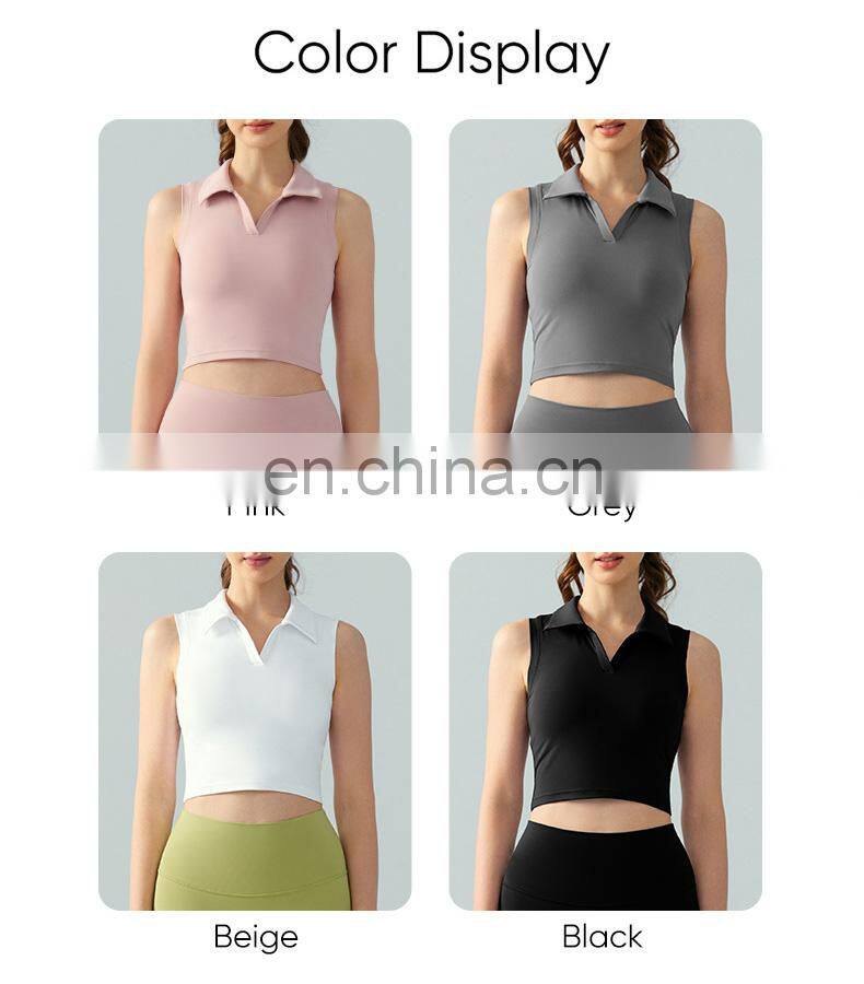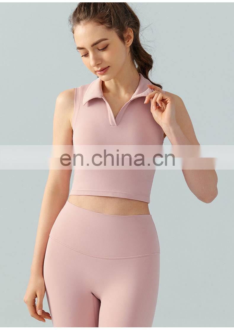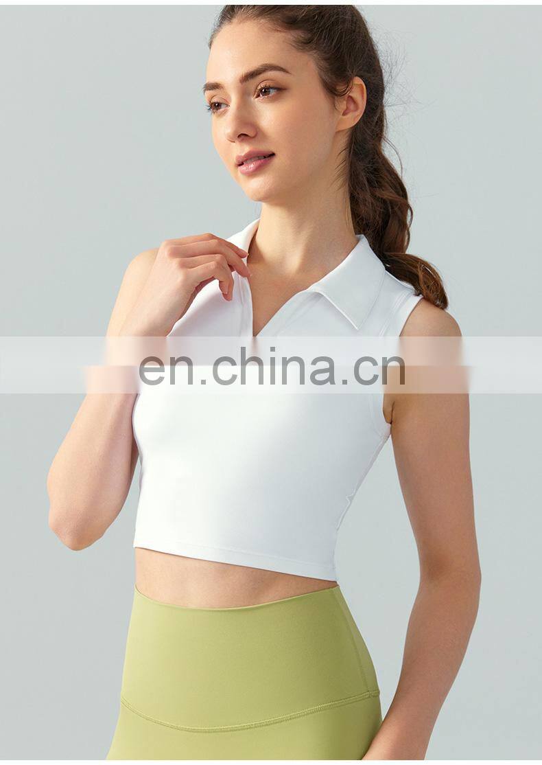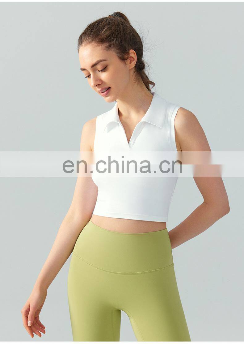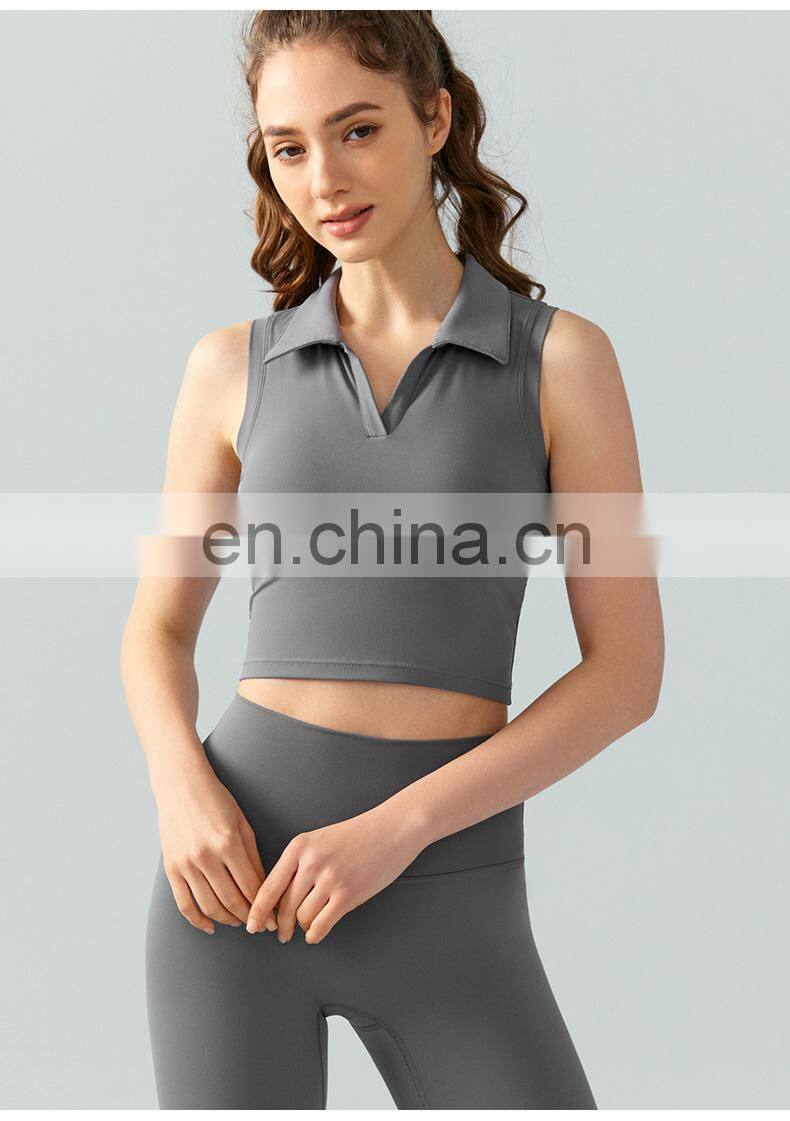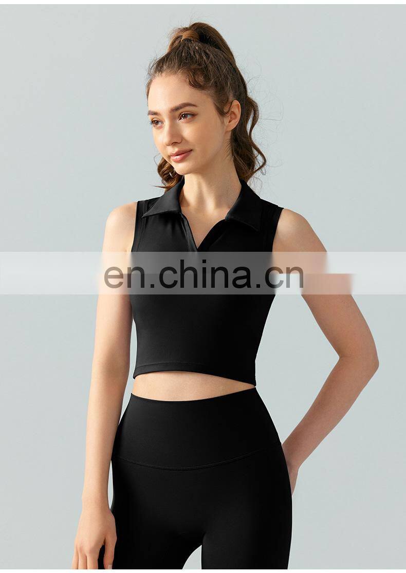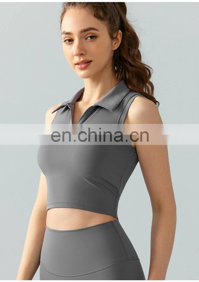 Custom Logo Fixed Pad Vest Slim Thin Breathable Fitness Running Crop Tops Lapel Sleeveless Sports Top Yoga Tank Top For Women