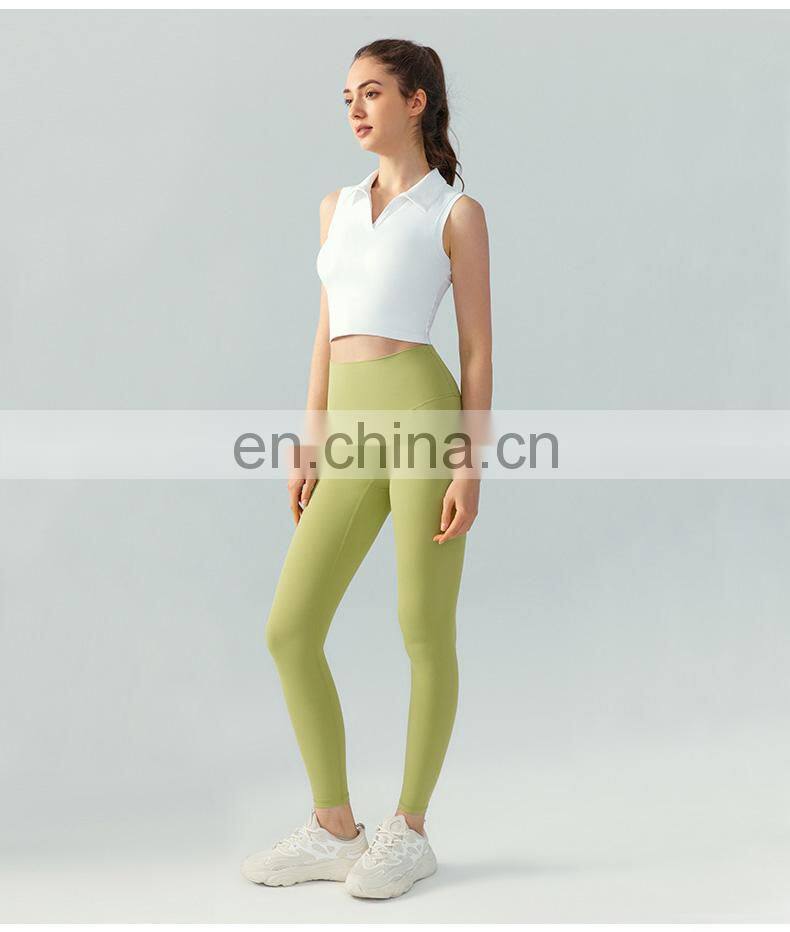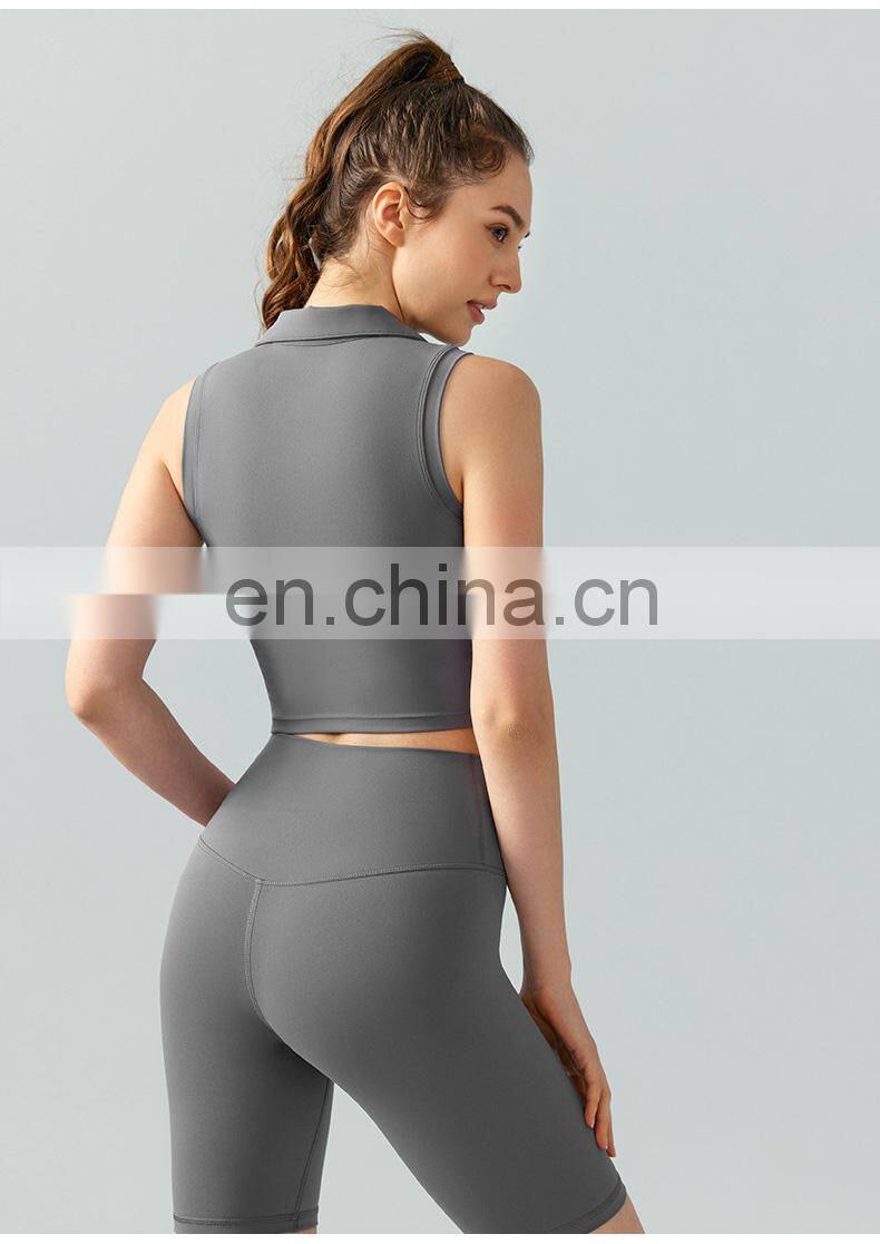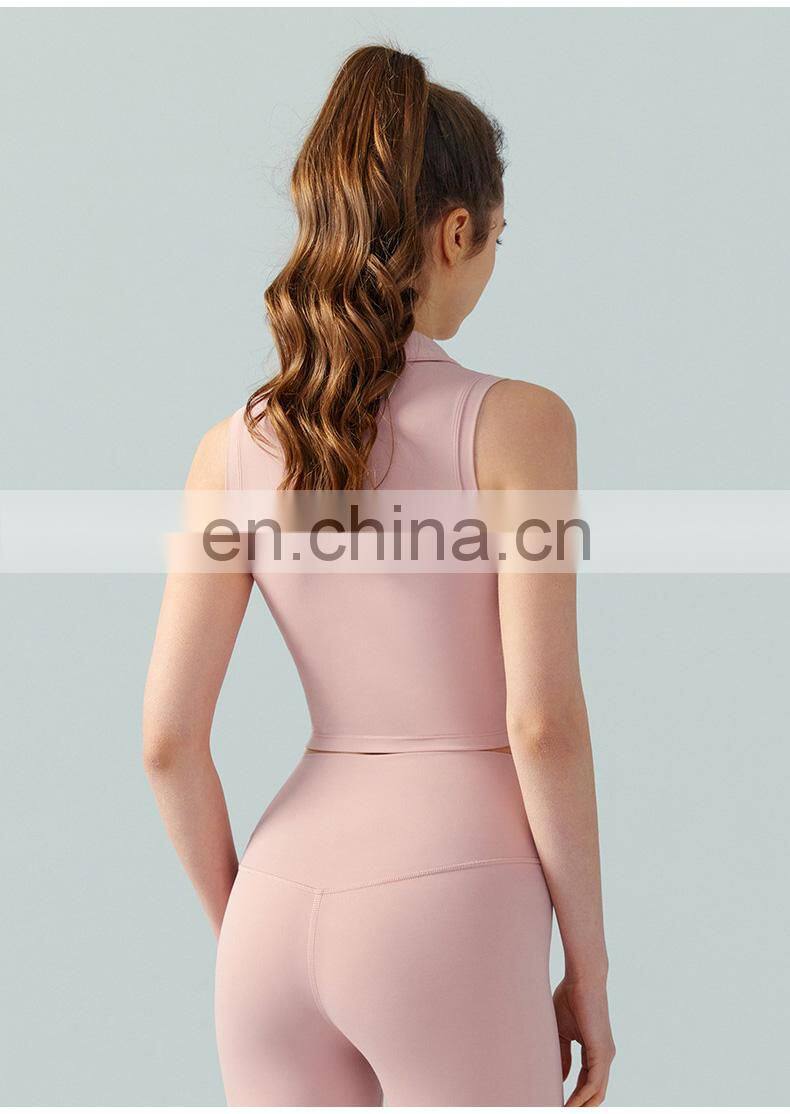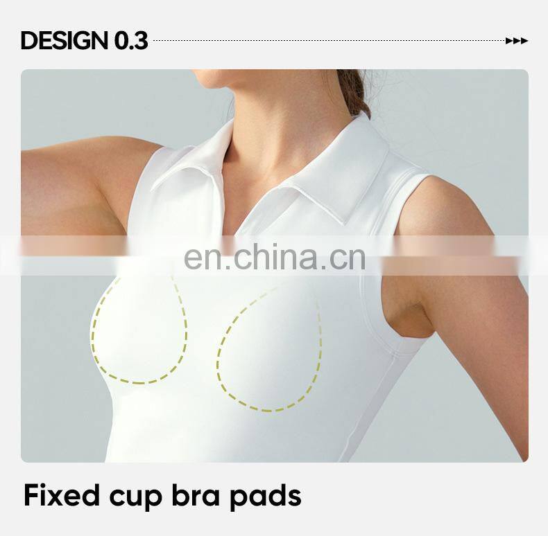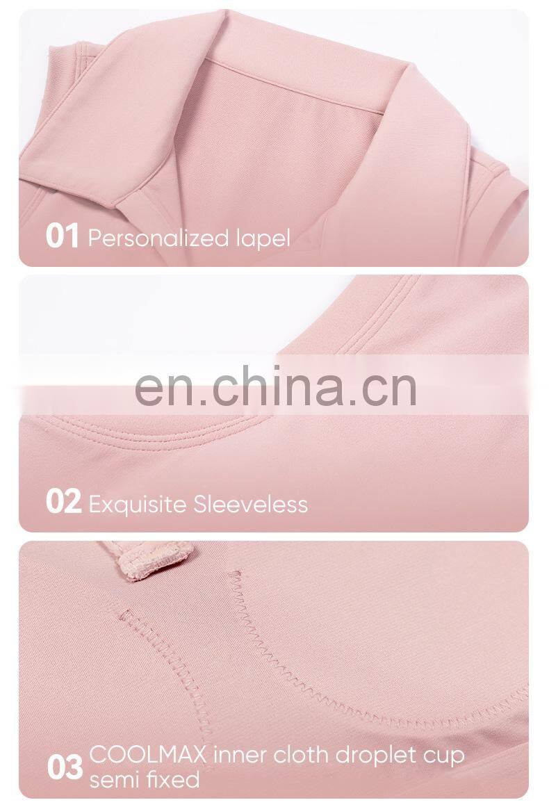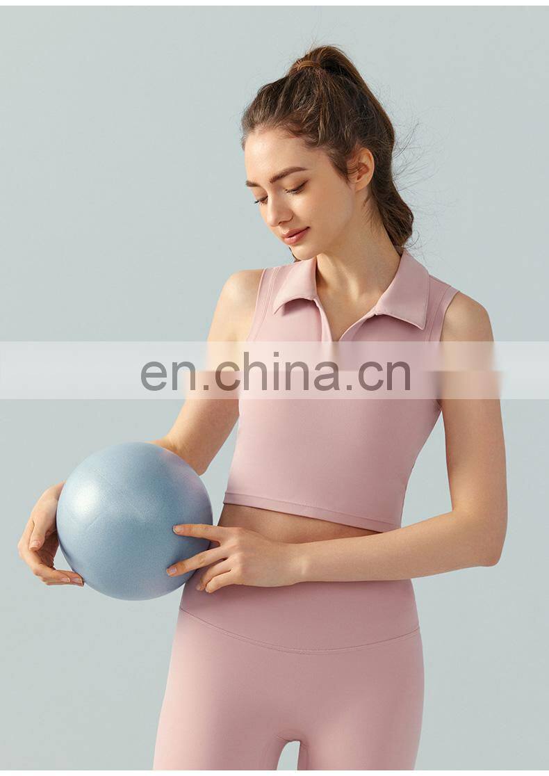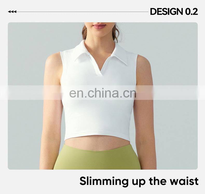 Custom Logo Fixed Pad Vest Slim Thin Breathable Fitness Running Crop Tops Lapel Sleeveless Sports Top Yoga Tank Top For Women
