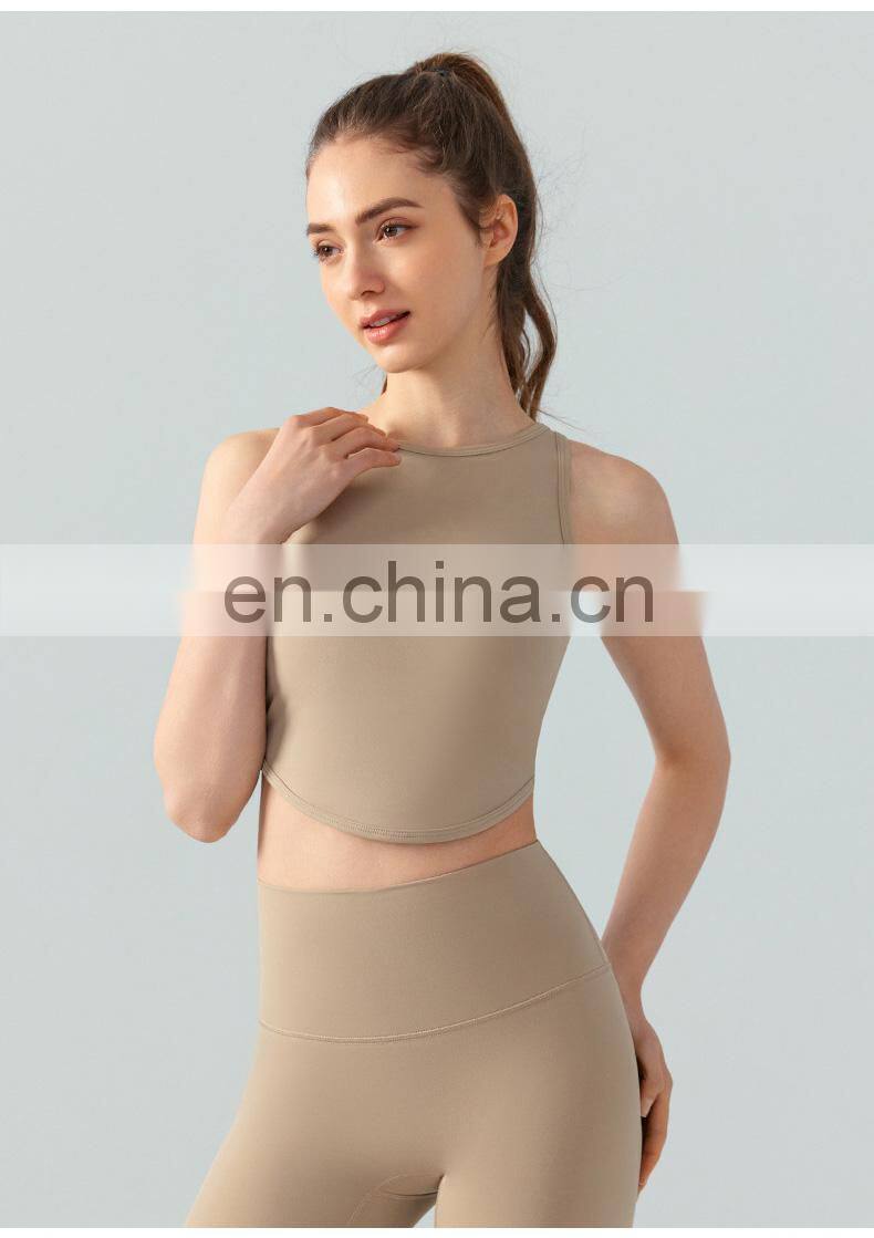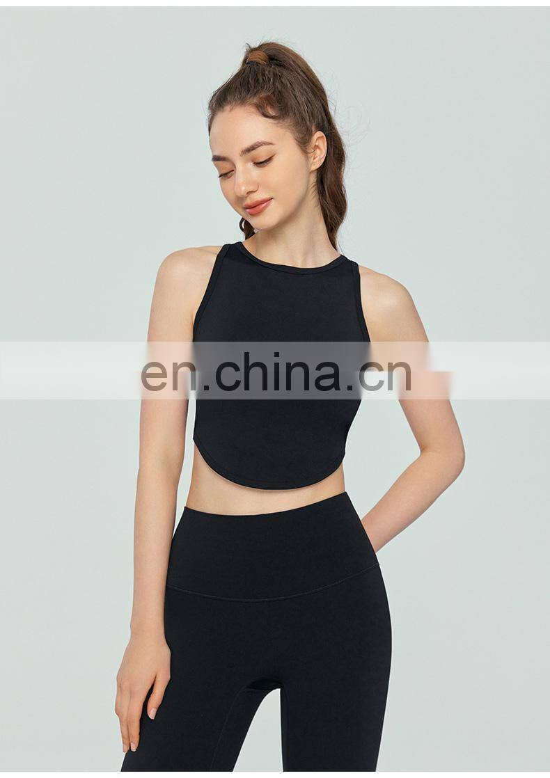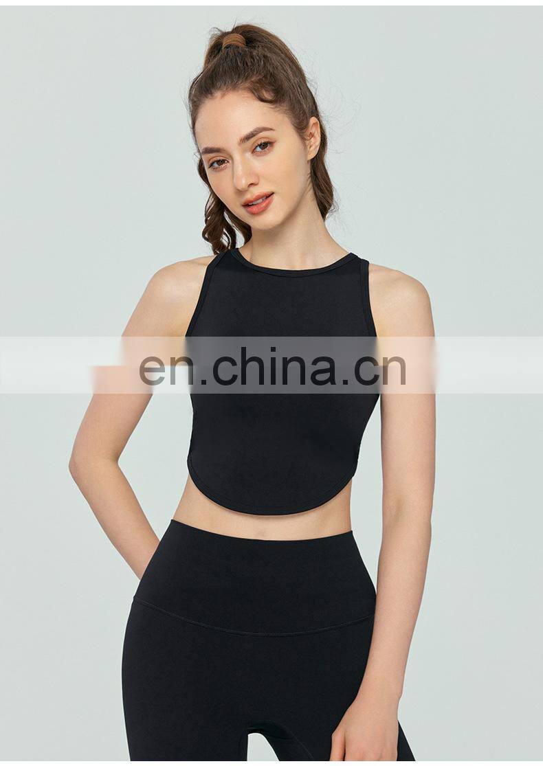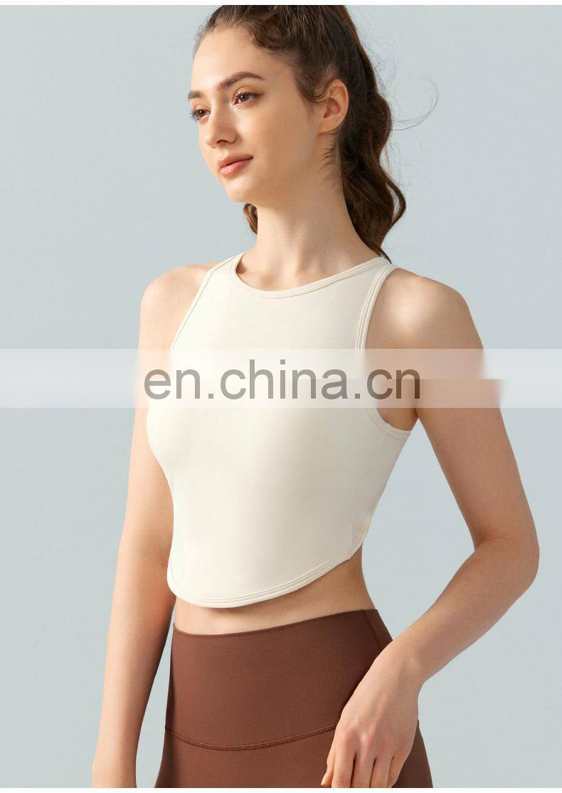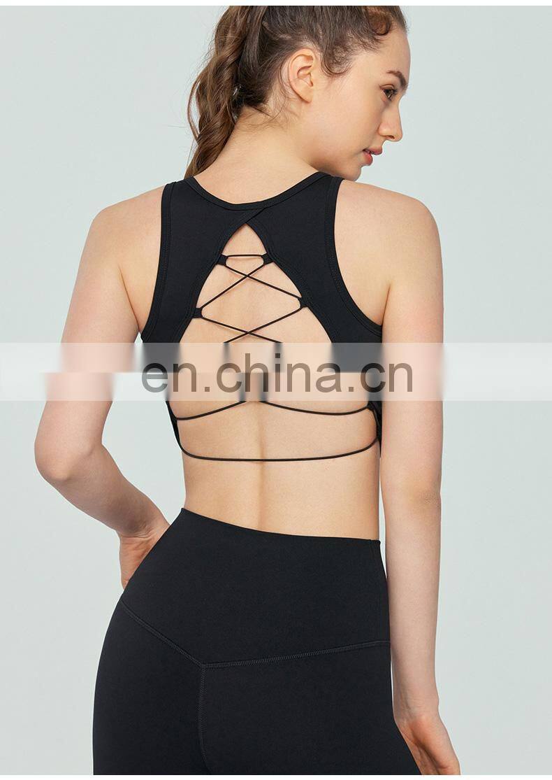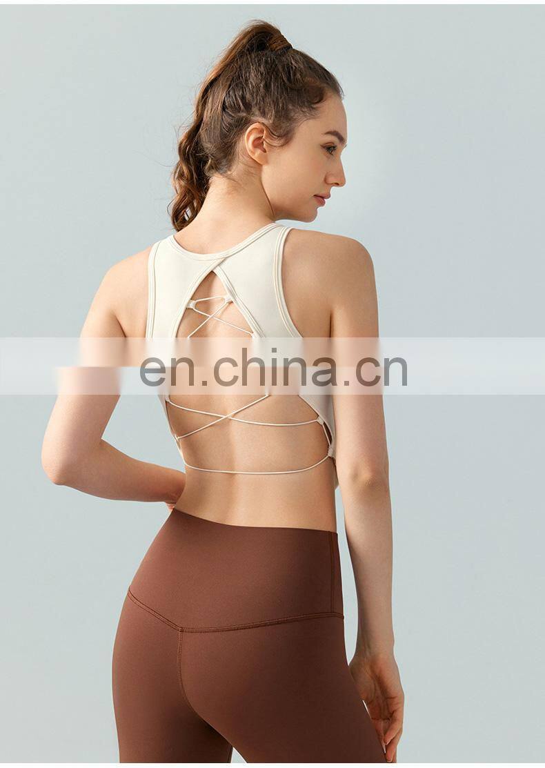 Home > Products > Update Weekly > High Neck Sexy Cross Back Tank Top Breathable Fitness Running Vest Fixed Pad Sports Crop Tops Women Sleeveless Yoga Tank Top