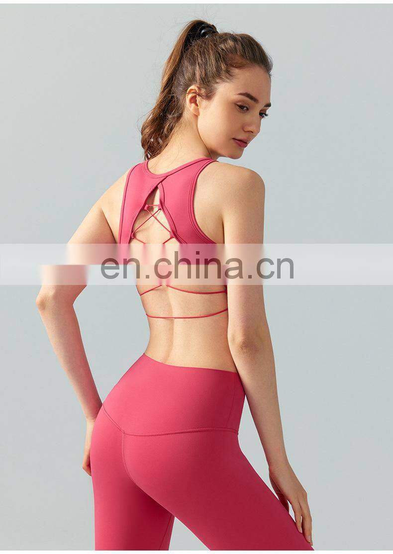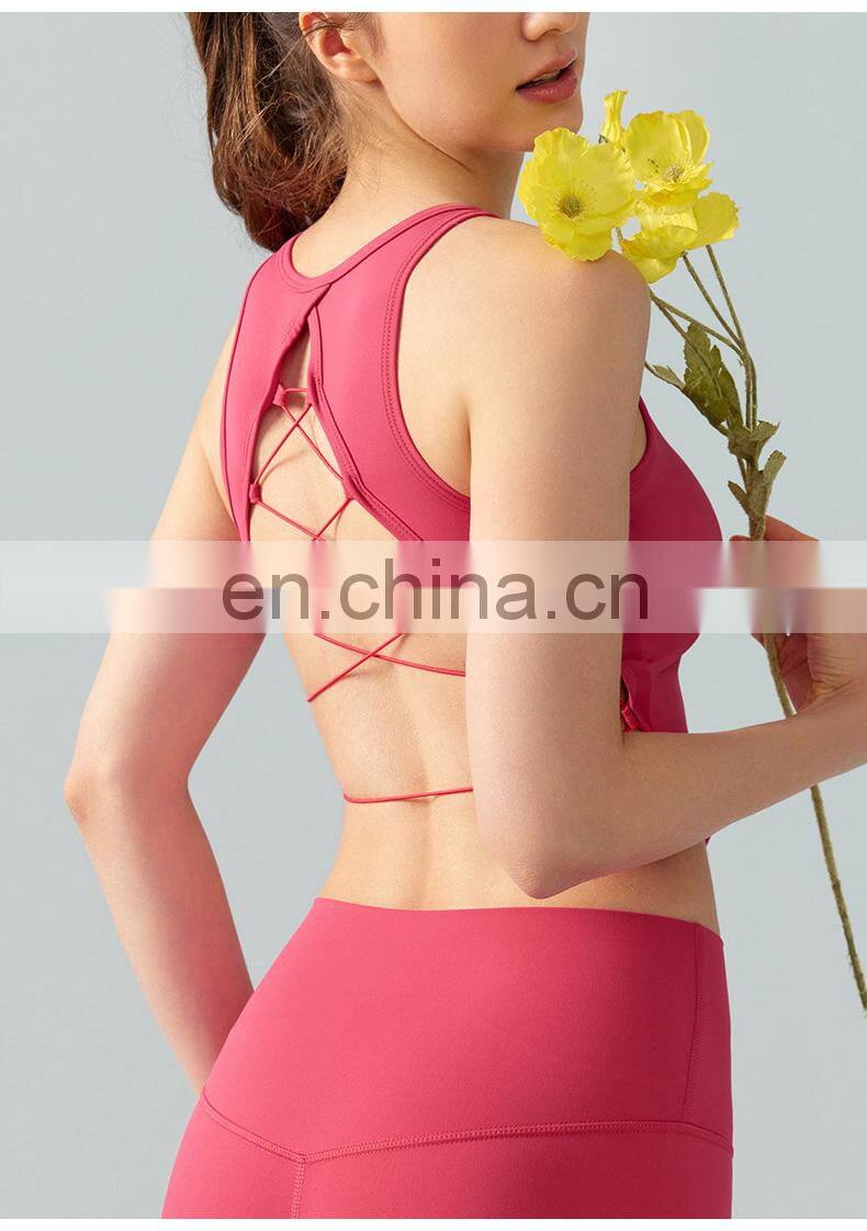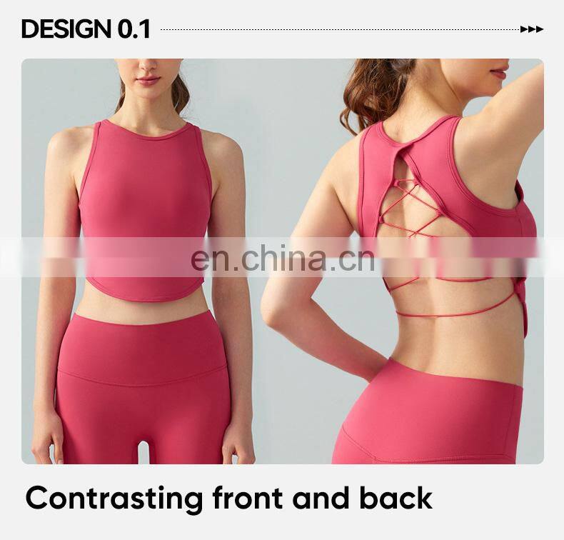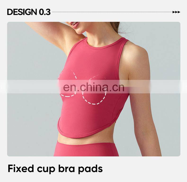 High Neck Sexy Cross Back Tank Top Breathable Fitness Running Vest Fixed Pad Sports Crop Tops Women Sleeveless Yoga Tank Top