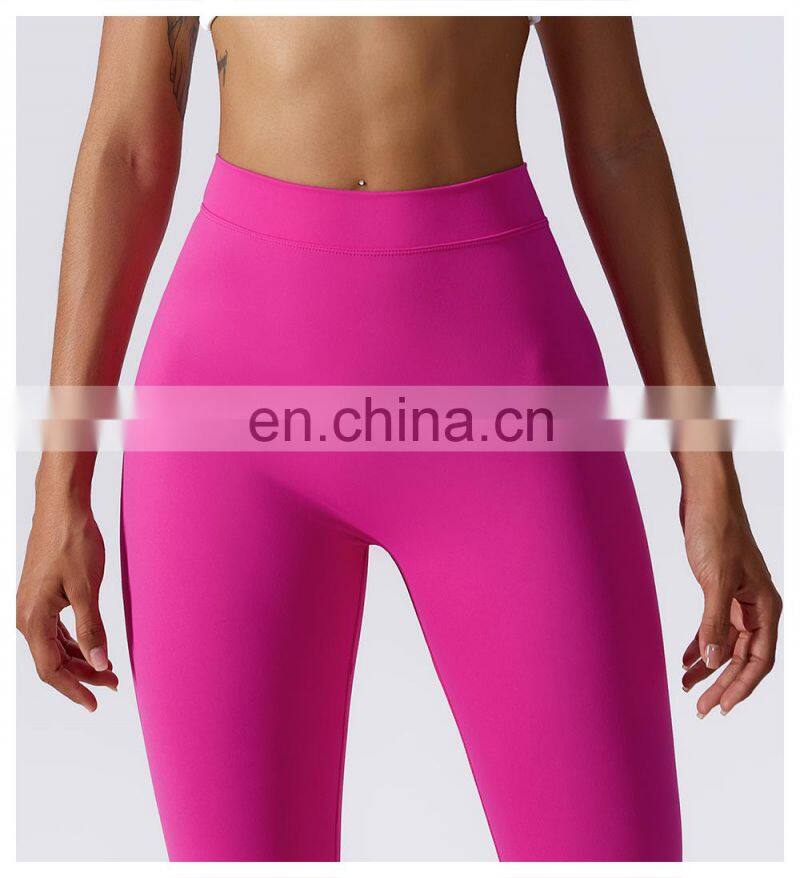 Wholesale High Waist Quality Flared Wide Leg Sports Fitness Gym Yoga Pants Soft Slim Peach Hip Women Workout Running Leggings