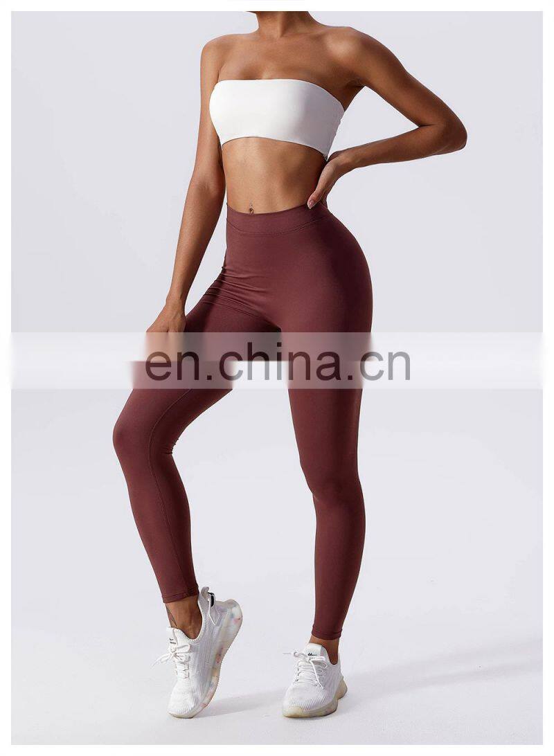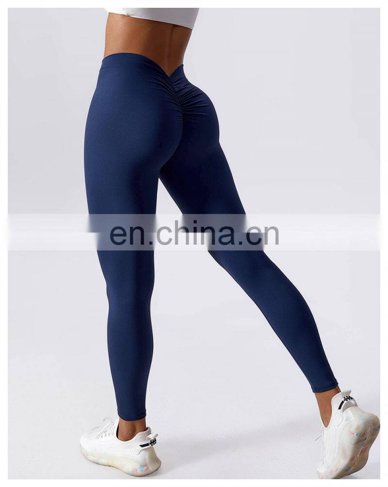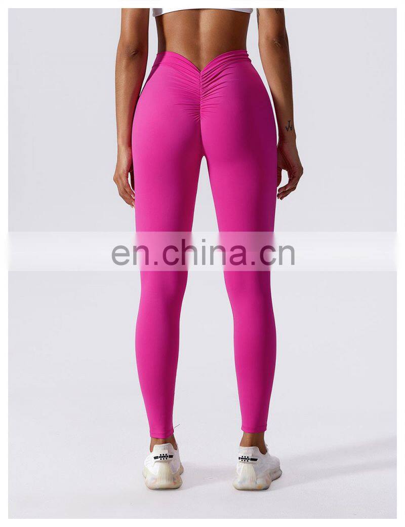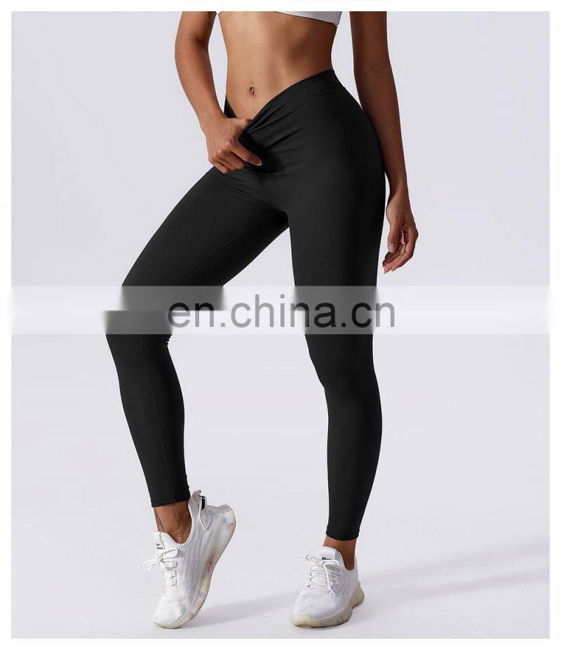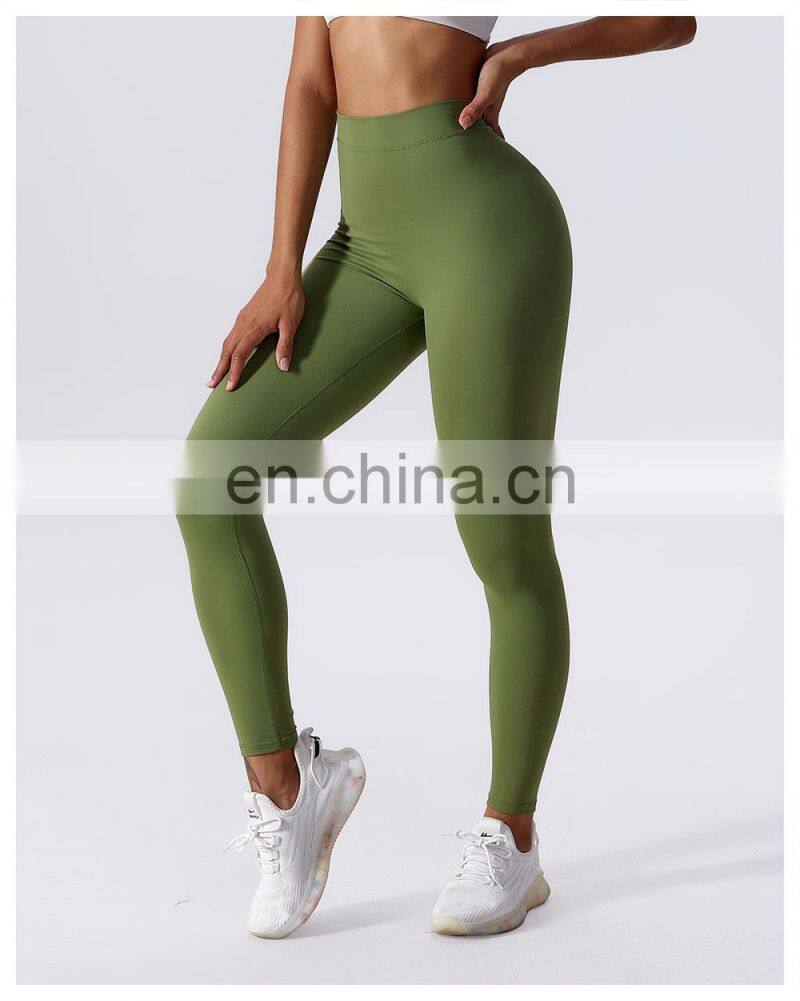 Custom Sexy Peach Hip High Waist V Cut Crossover Waist Yoga Leggings Gym Fitness Workout Activewear Tight Pants For Women
