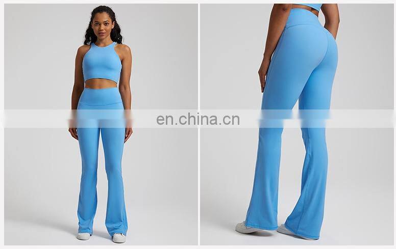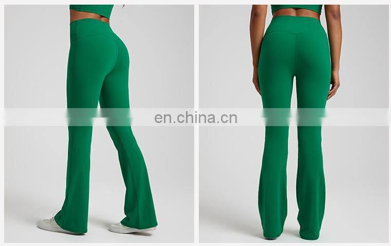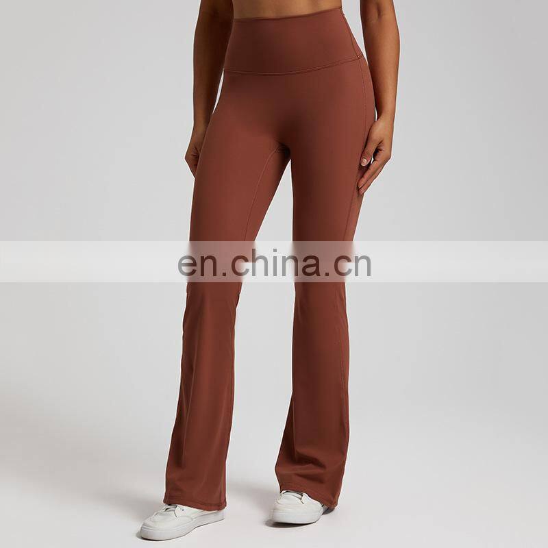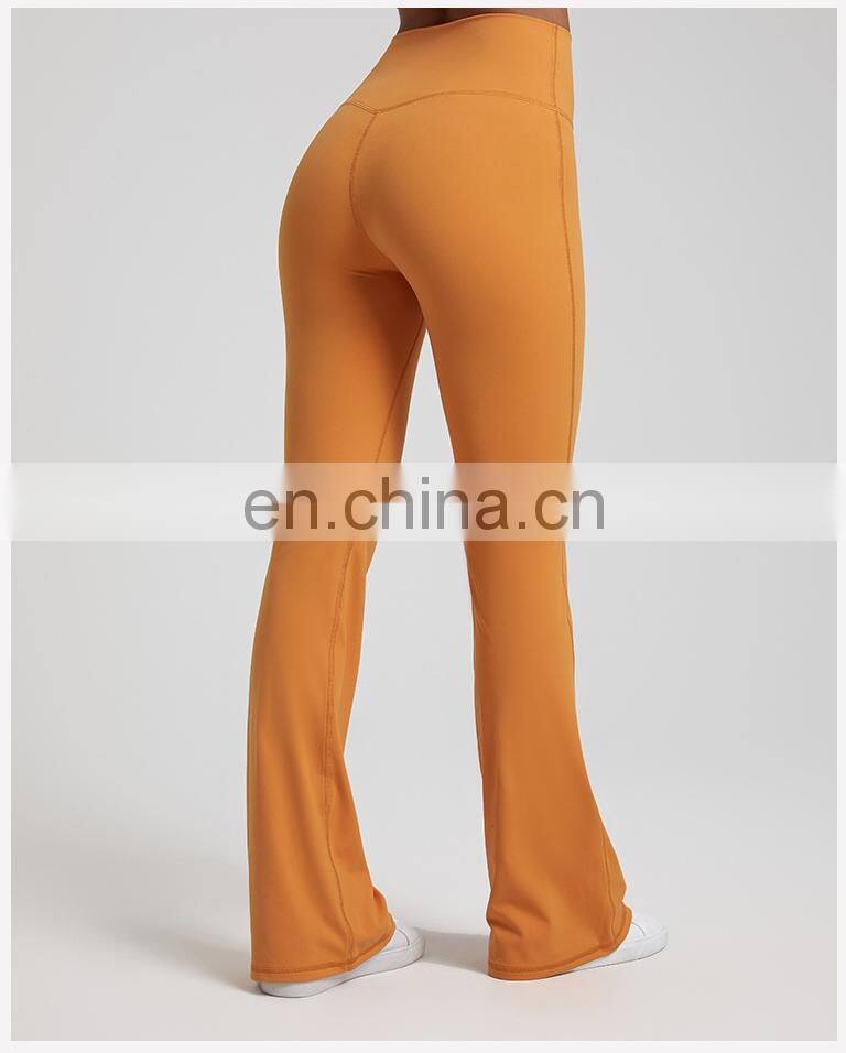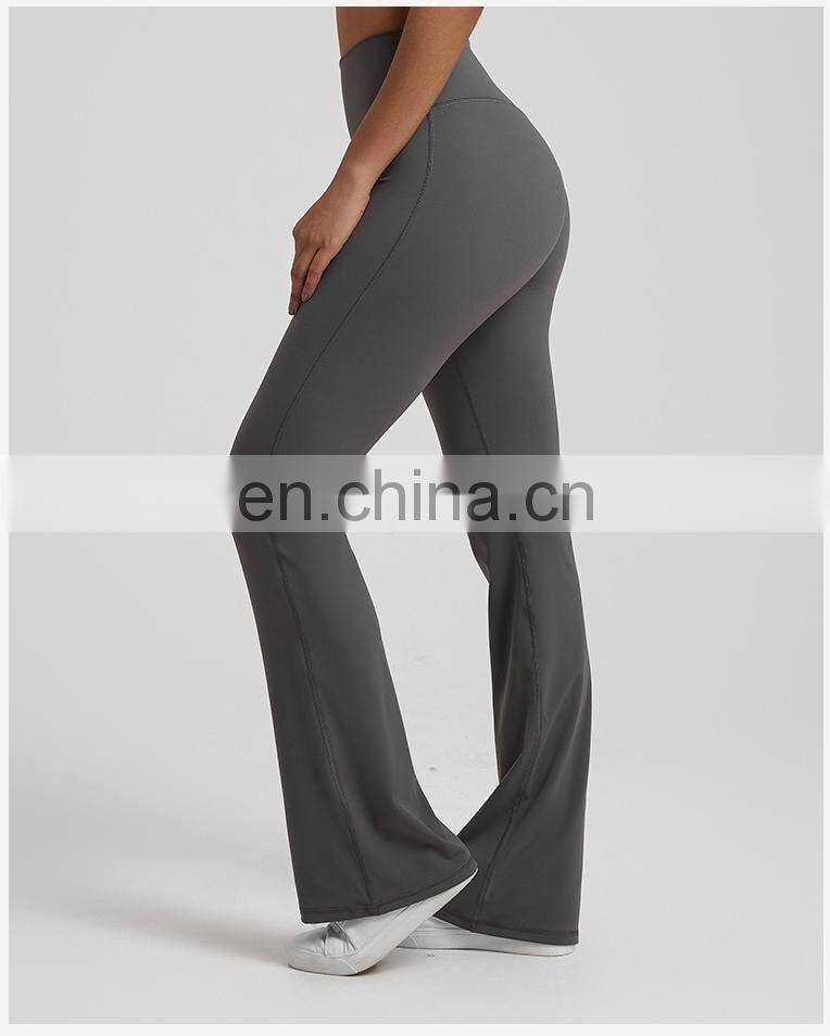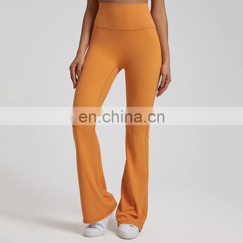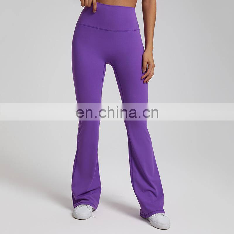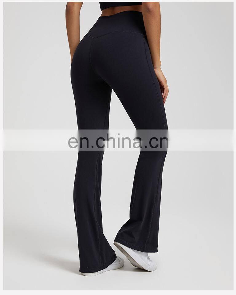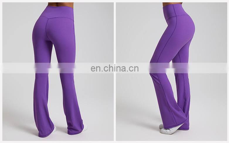 Wholesale High Waist Quality Flared Wide Leg Sports Fitness Gym Yoga Pants Soft Slim Peach Hip Women Workout Running Leggings