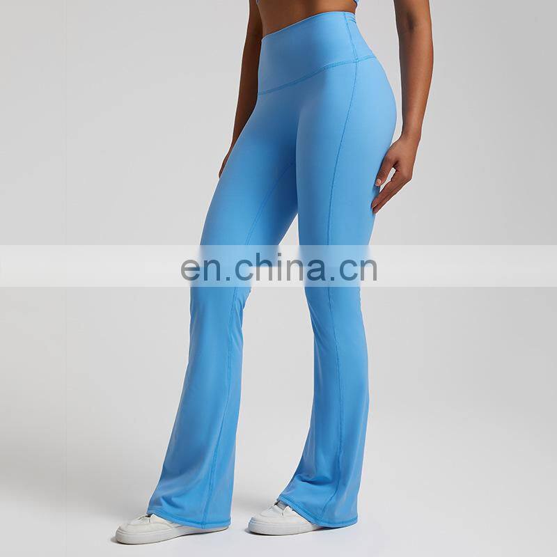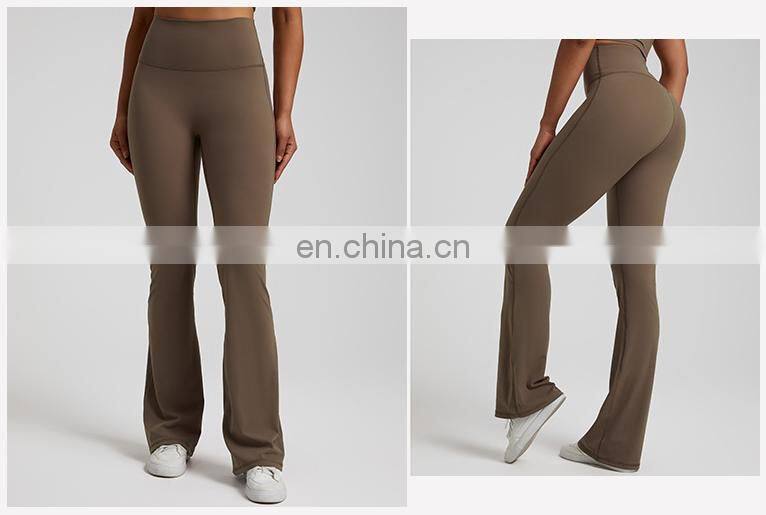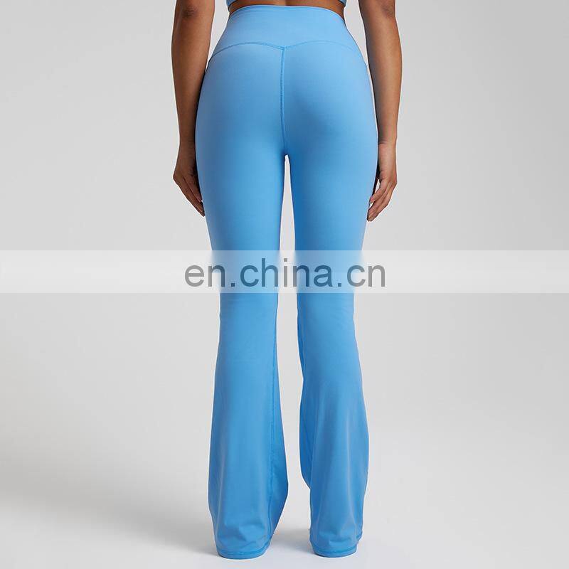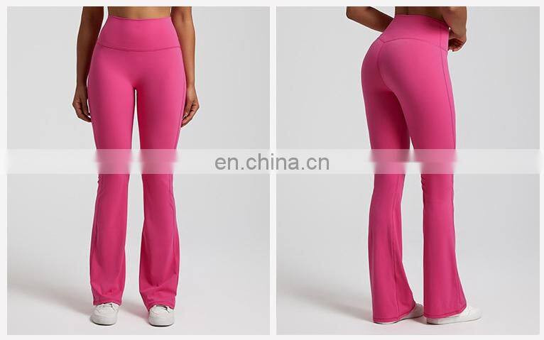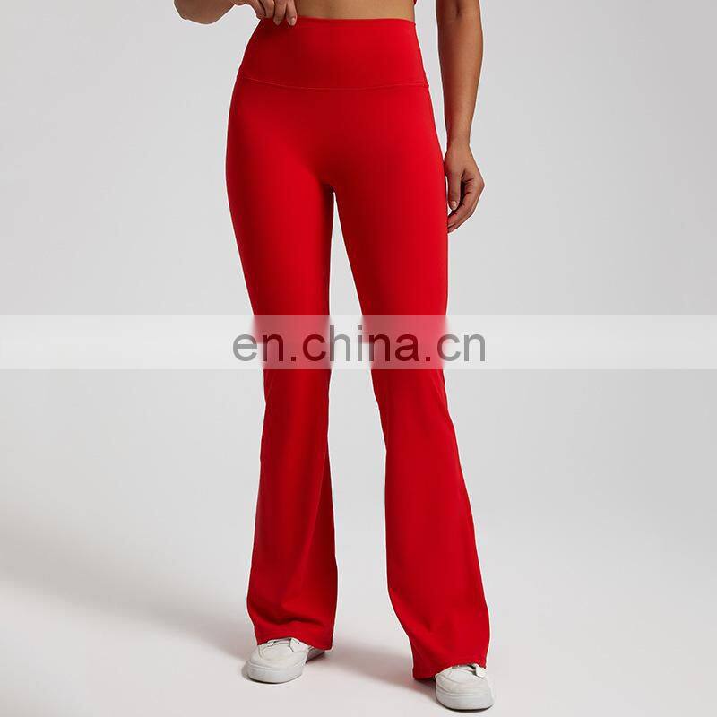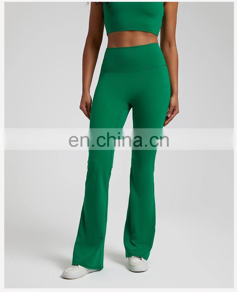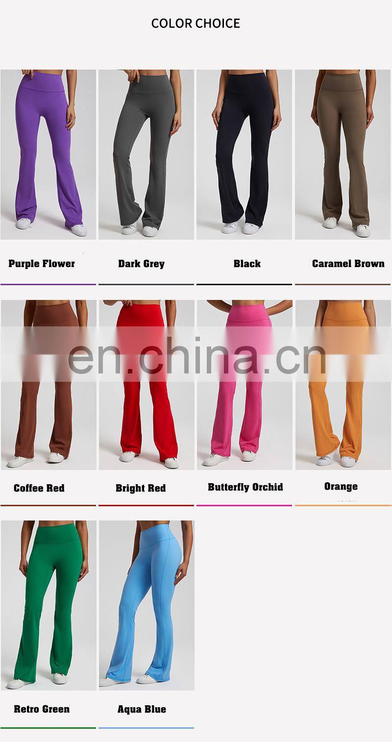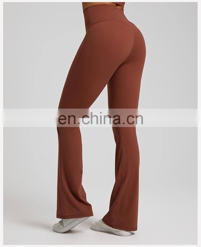 Wholesale High Waist Quality Flared Wide Leg Sports Fitness Gym Yoga Pants Soft Slim Peach Hip Women Workout Running Leggings