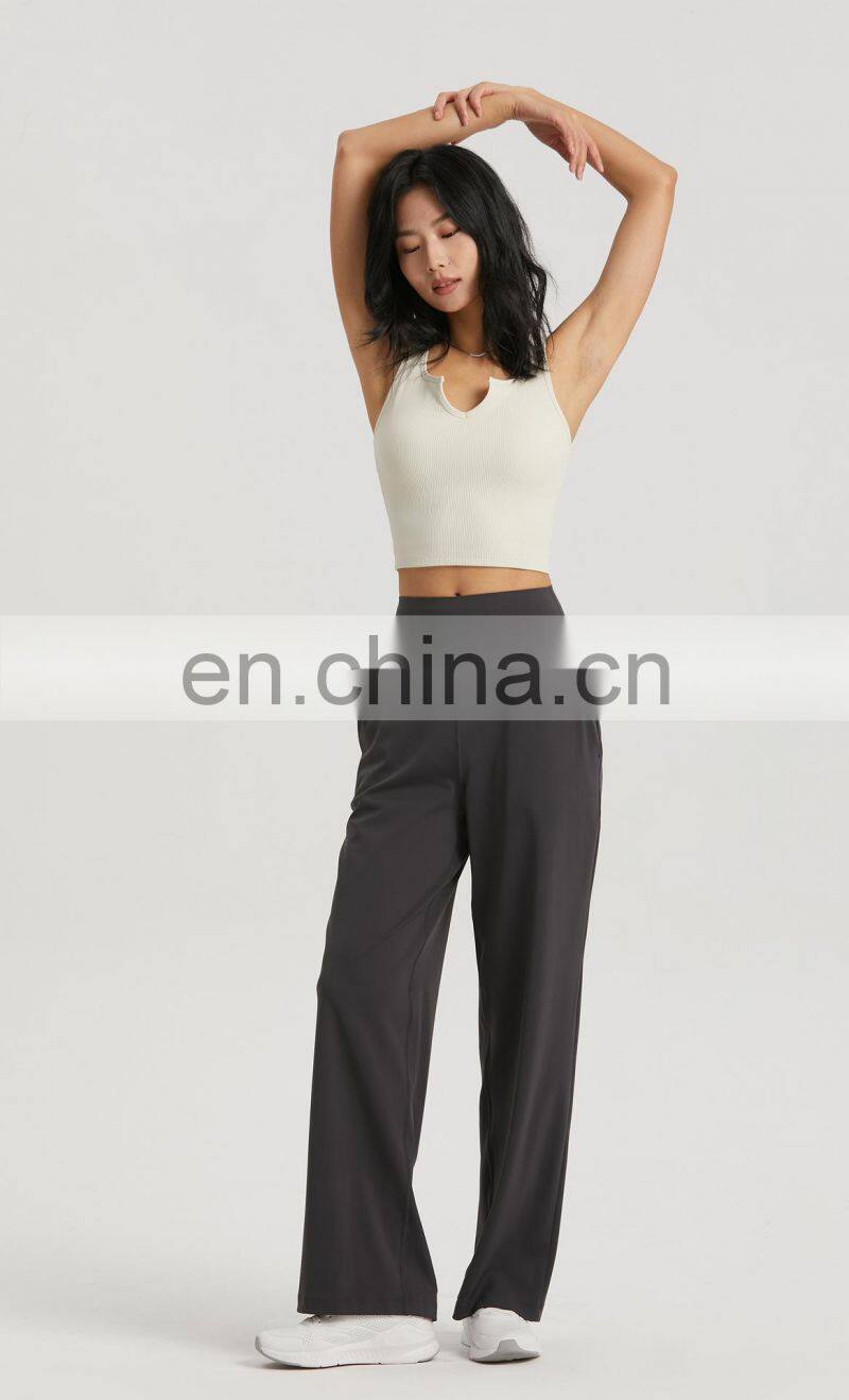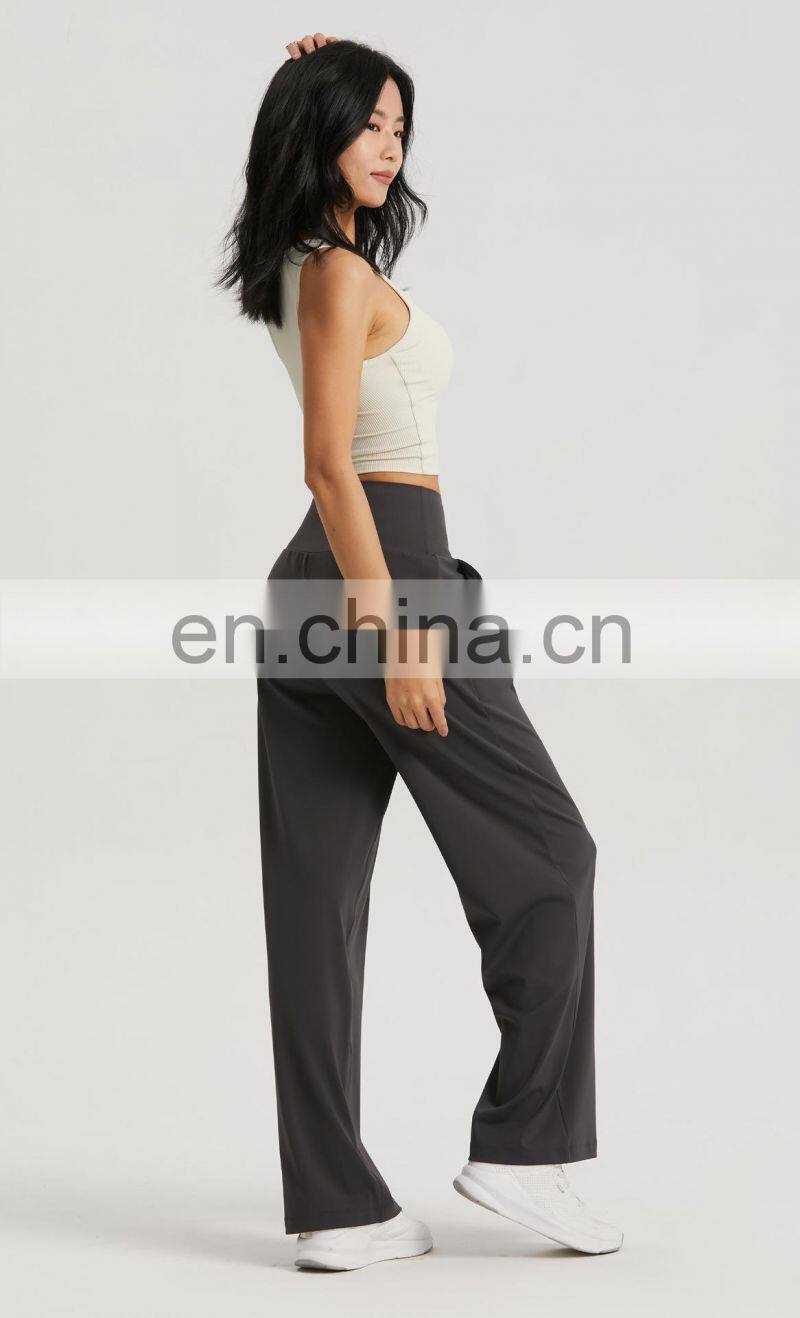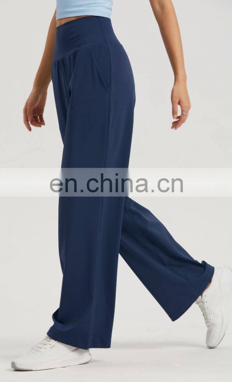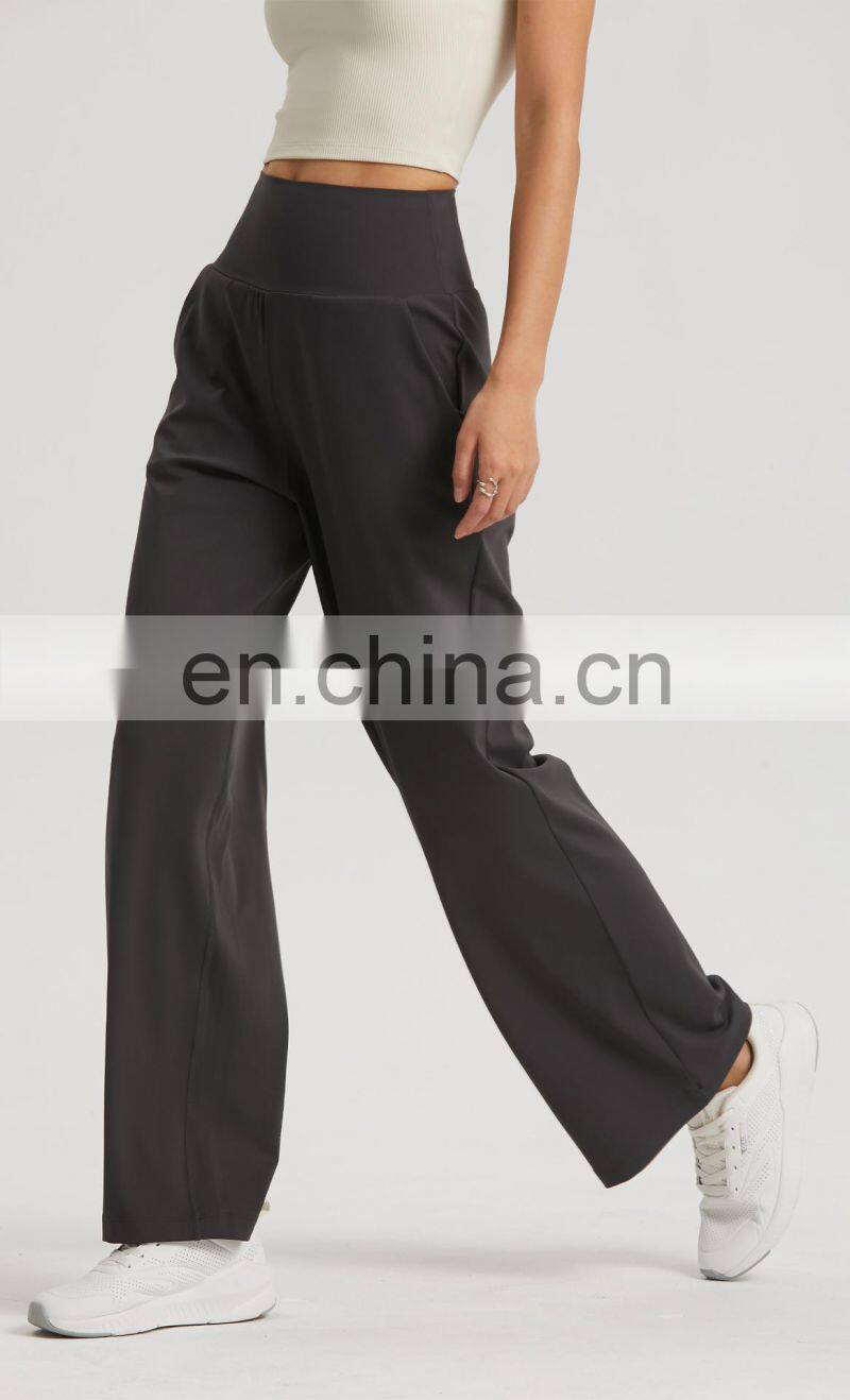 Newest Straight Wide Leg Sports Dance Yoga Pants High Waist Side Pocket Soft Gym Fitness Loose Casual Jogging Outfit For Women