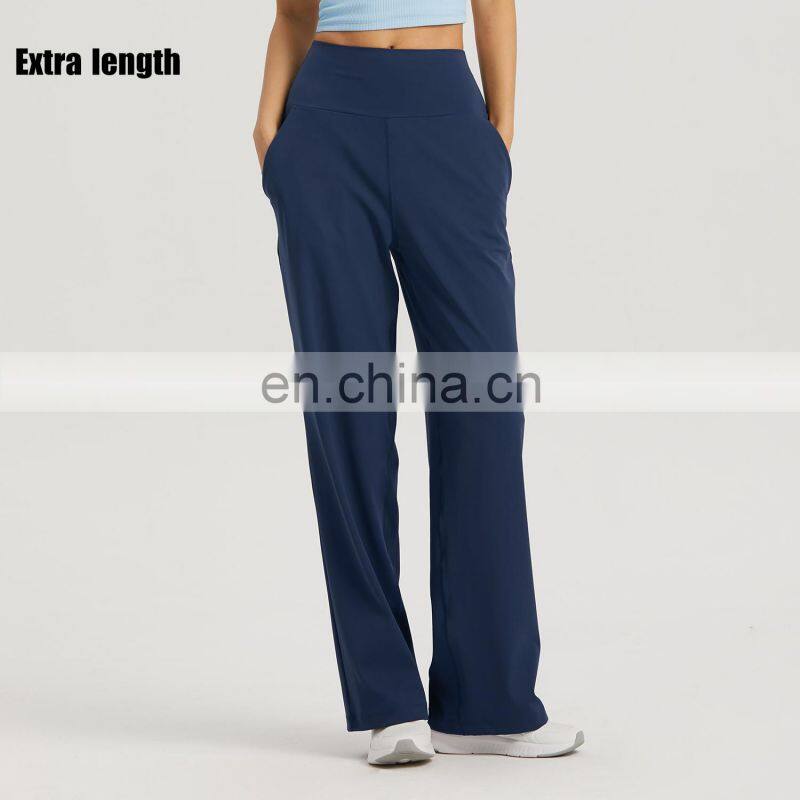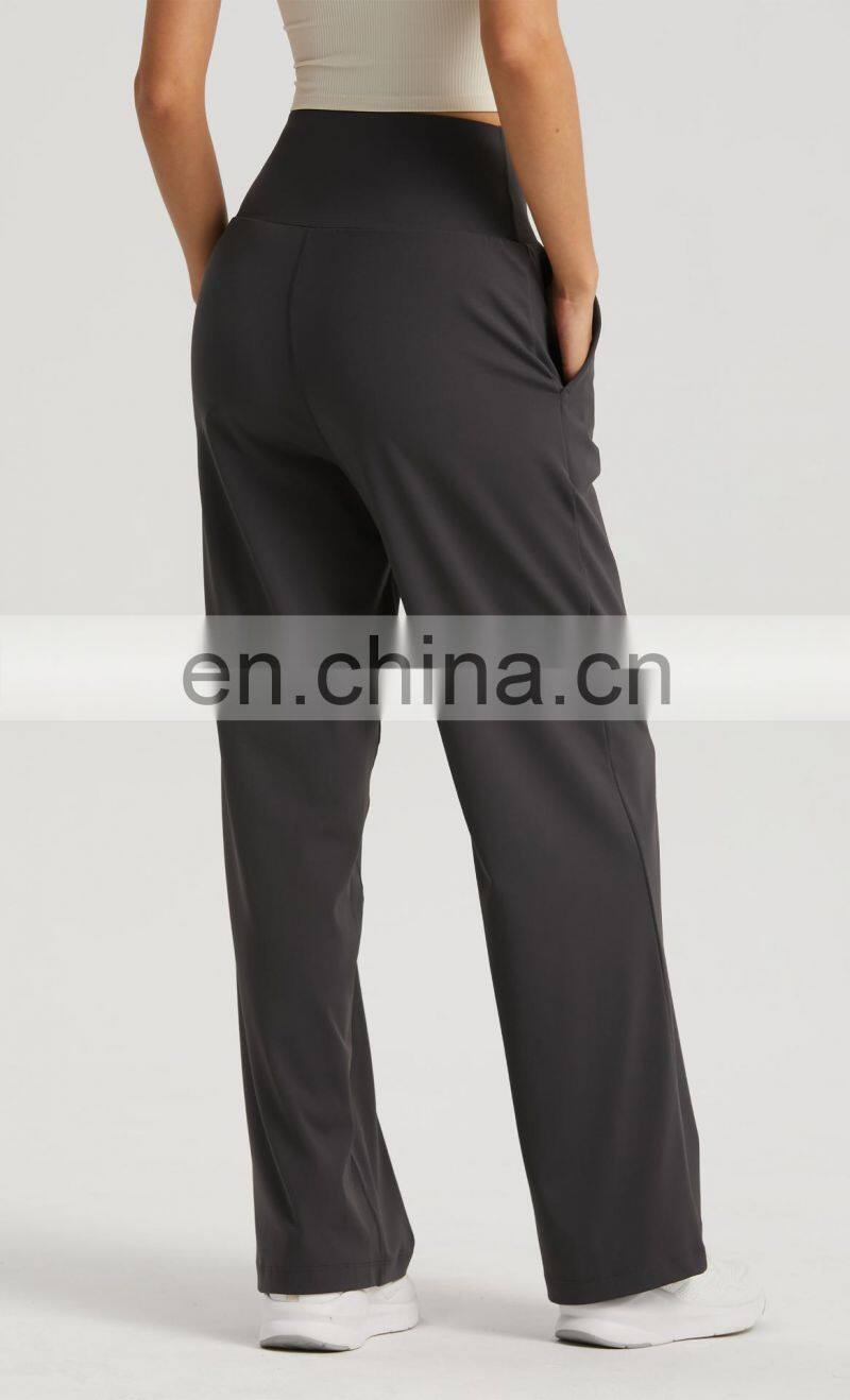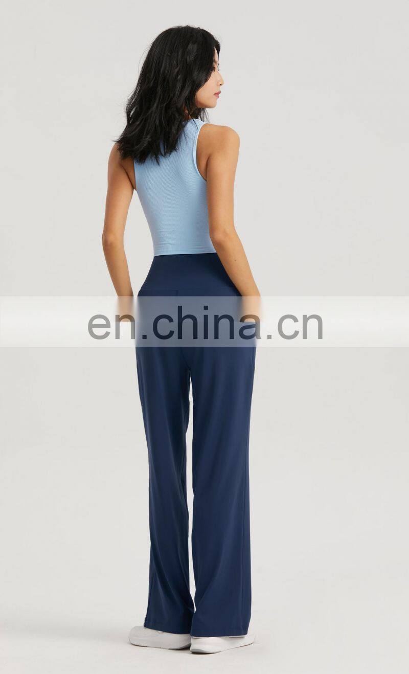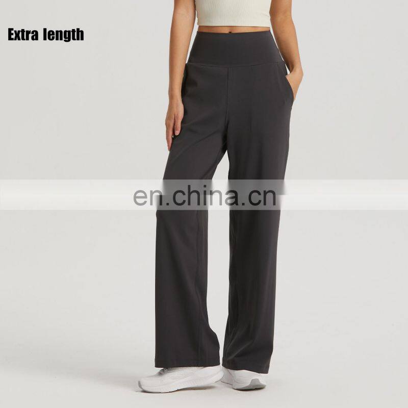 Newest Straight Wide Leg Sports Dance Yoga Pants High Waist Side Pocket Soft Gym Fitness Loose Casual Jogging Outfit For Women