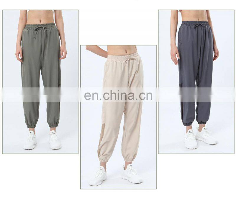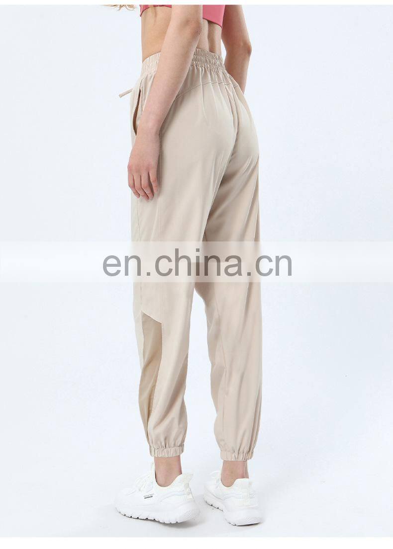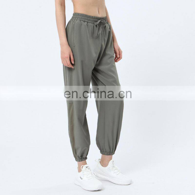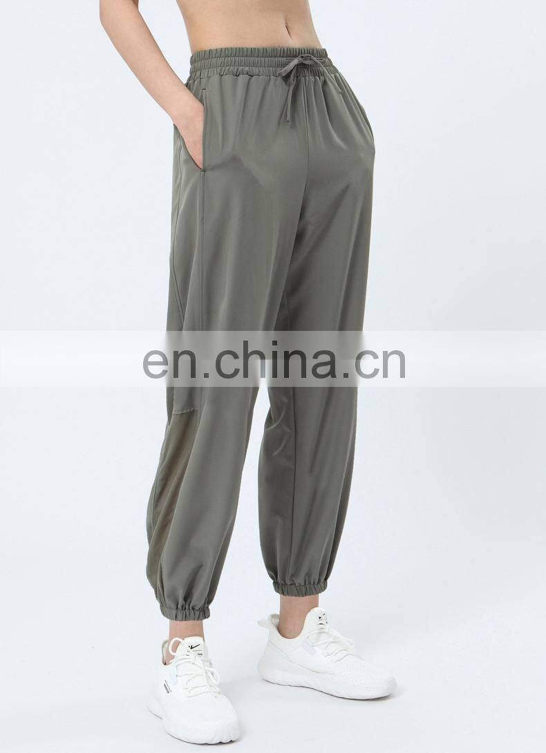Quick Dry Polyester Mesh Breathable Gym Jogging Ankle-tie Pants Drawstring Outdoor Running Training Sport Wear Trouser For Women