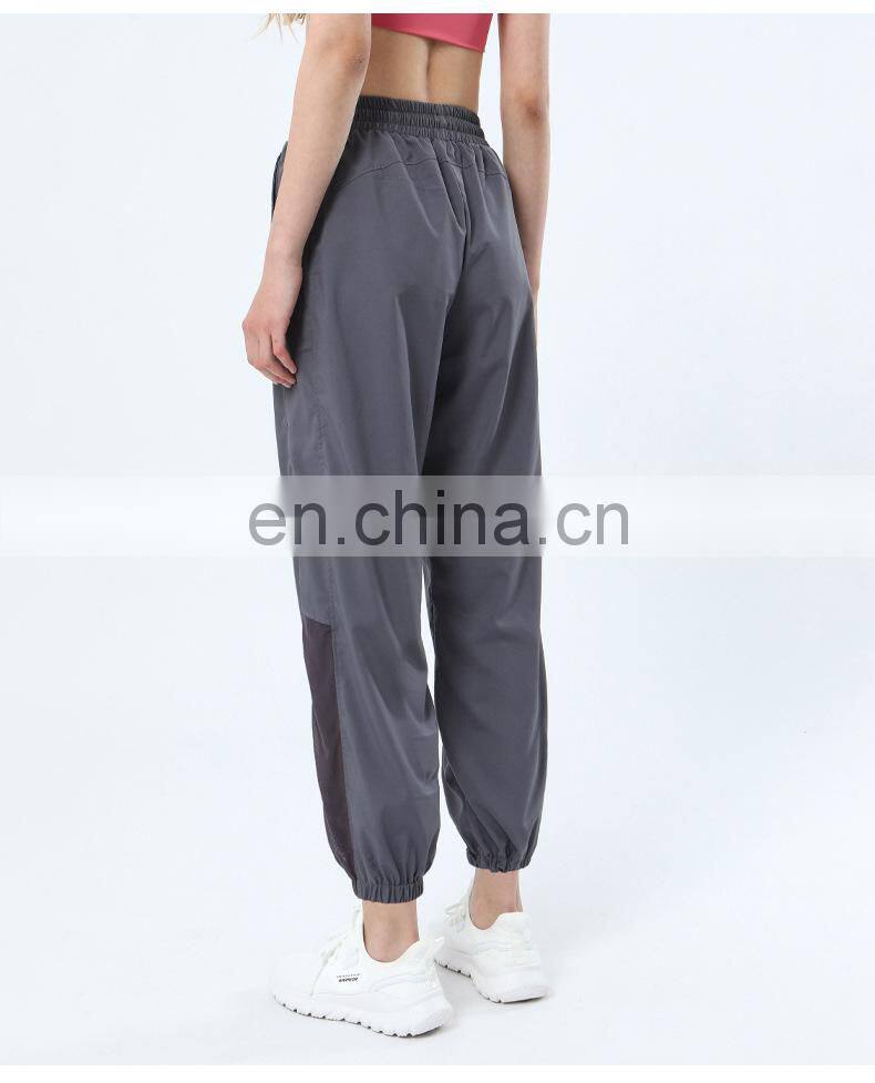 New Arrival Quick Dry Color Blocking Pocket Gym Pants Women Drawstring Elastic Workout Fitness Training&jogging Sports Wear
