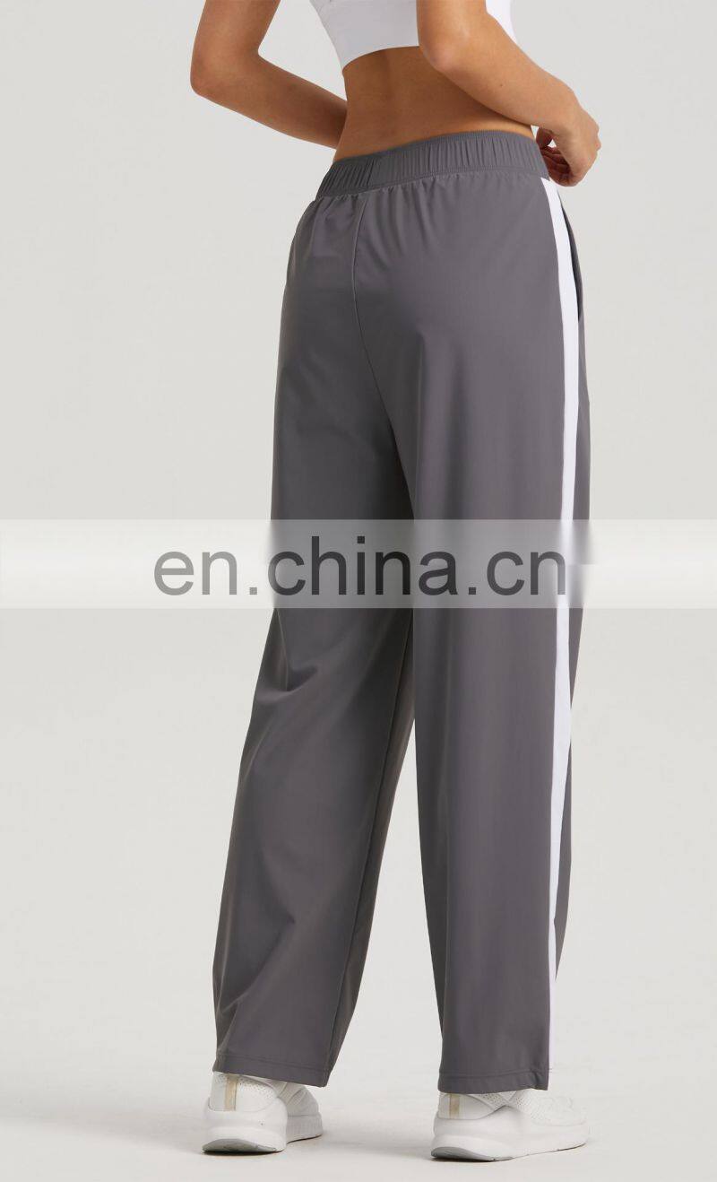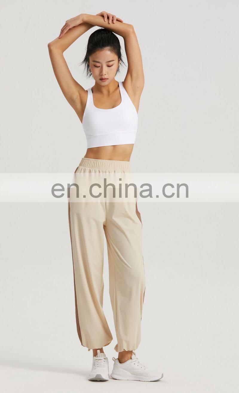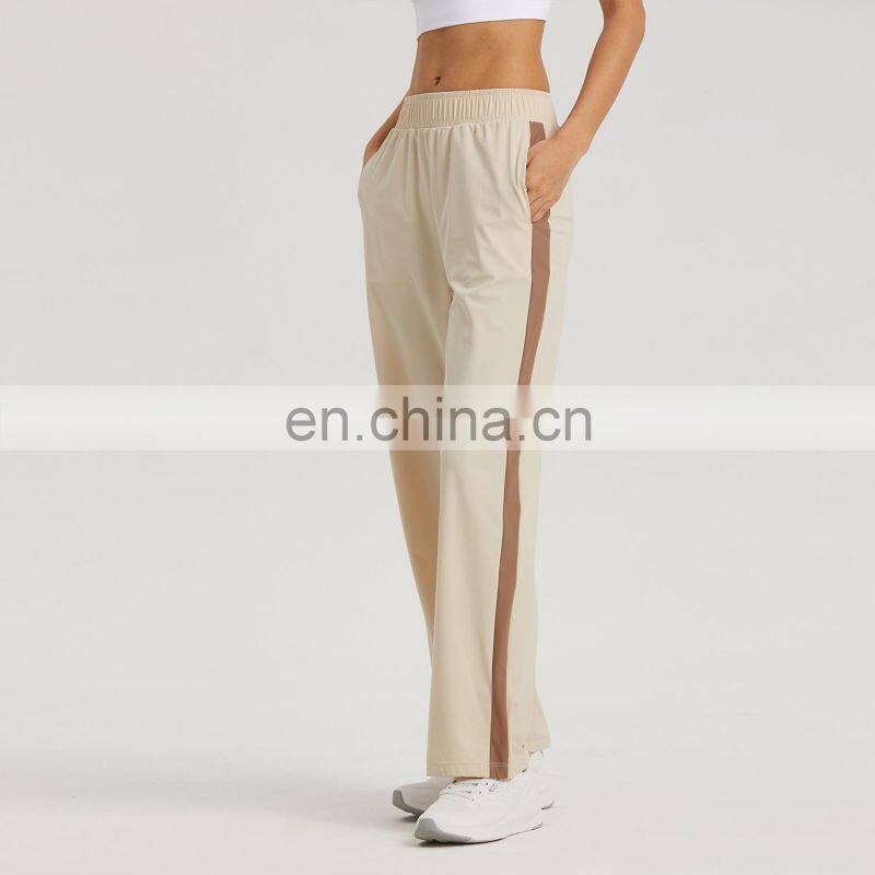 New Arrival Quick Dry Color Blocking Pocket Gym Pants Women Drawstring Elastic Workout Fitness Training&jogging Sports Wear