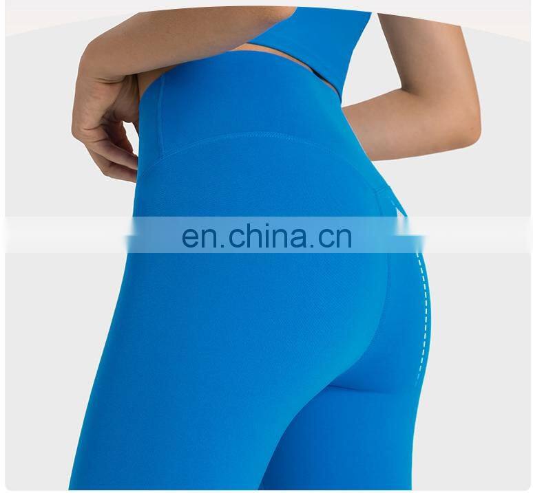 Wholesale Anti-Bacterial Good Quality Lycra Yoga Leggings Nude Workout Running Fitness Wear Peach Hip Gym Tight Pants For Women