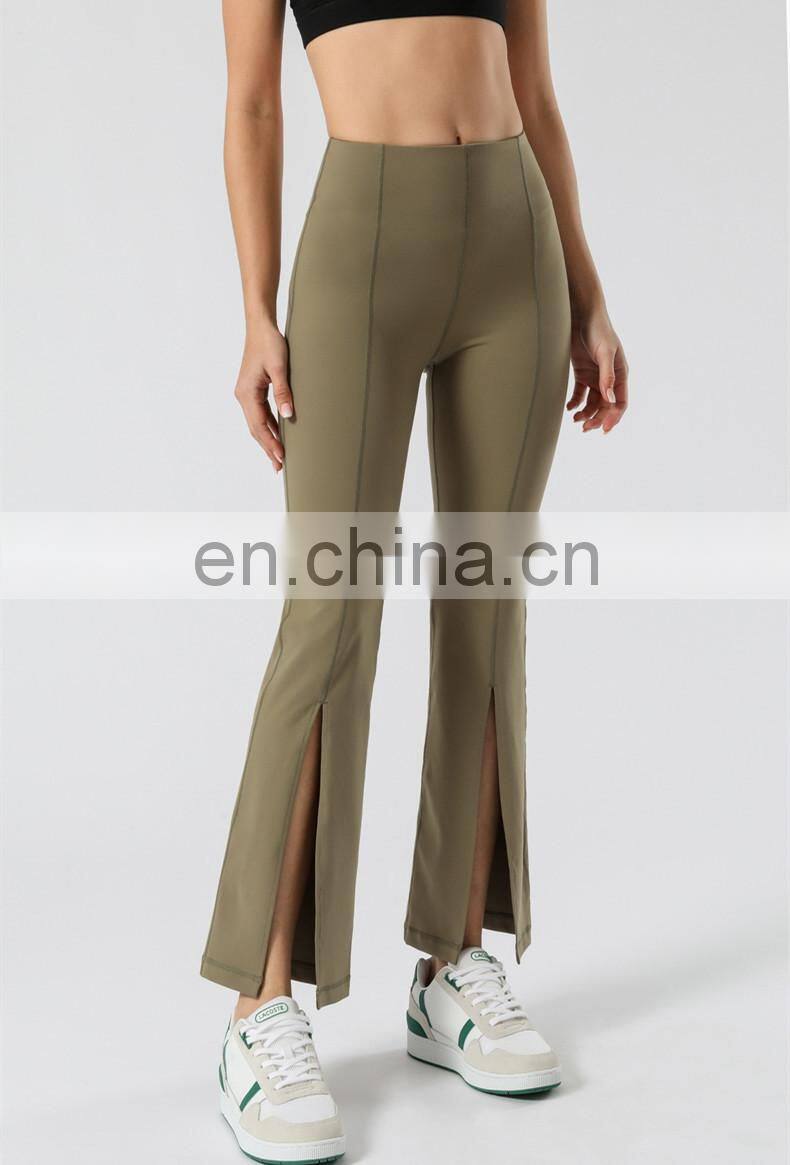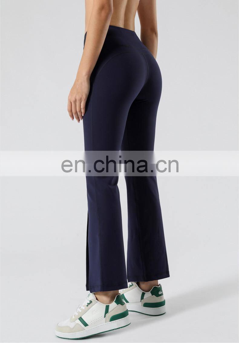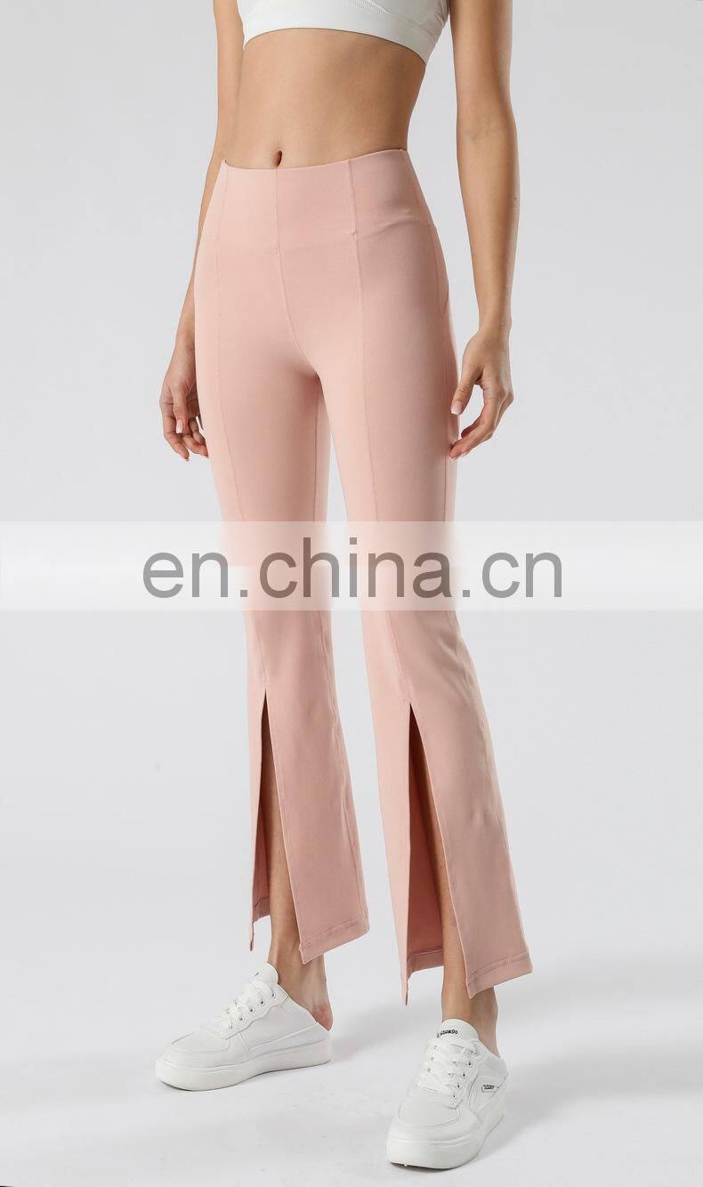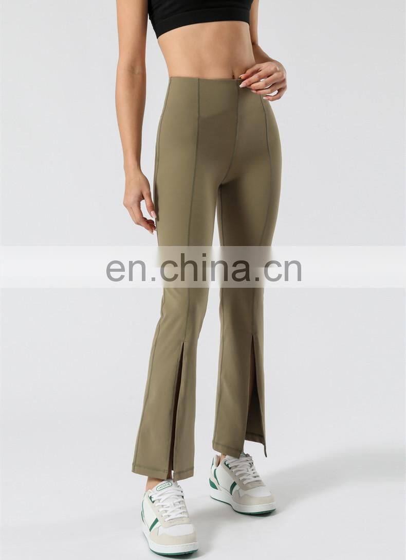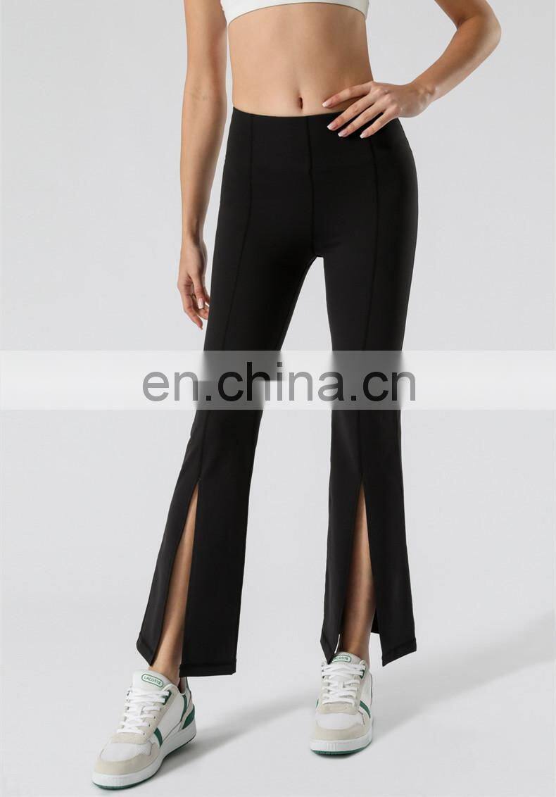 Fashion Naked Feeling Open Flared Wide Leg Yoga Pants Custom Evrlue Fabric Hot Sexy Gym Fitness Wear Dance Leggings For Women