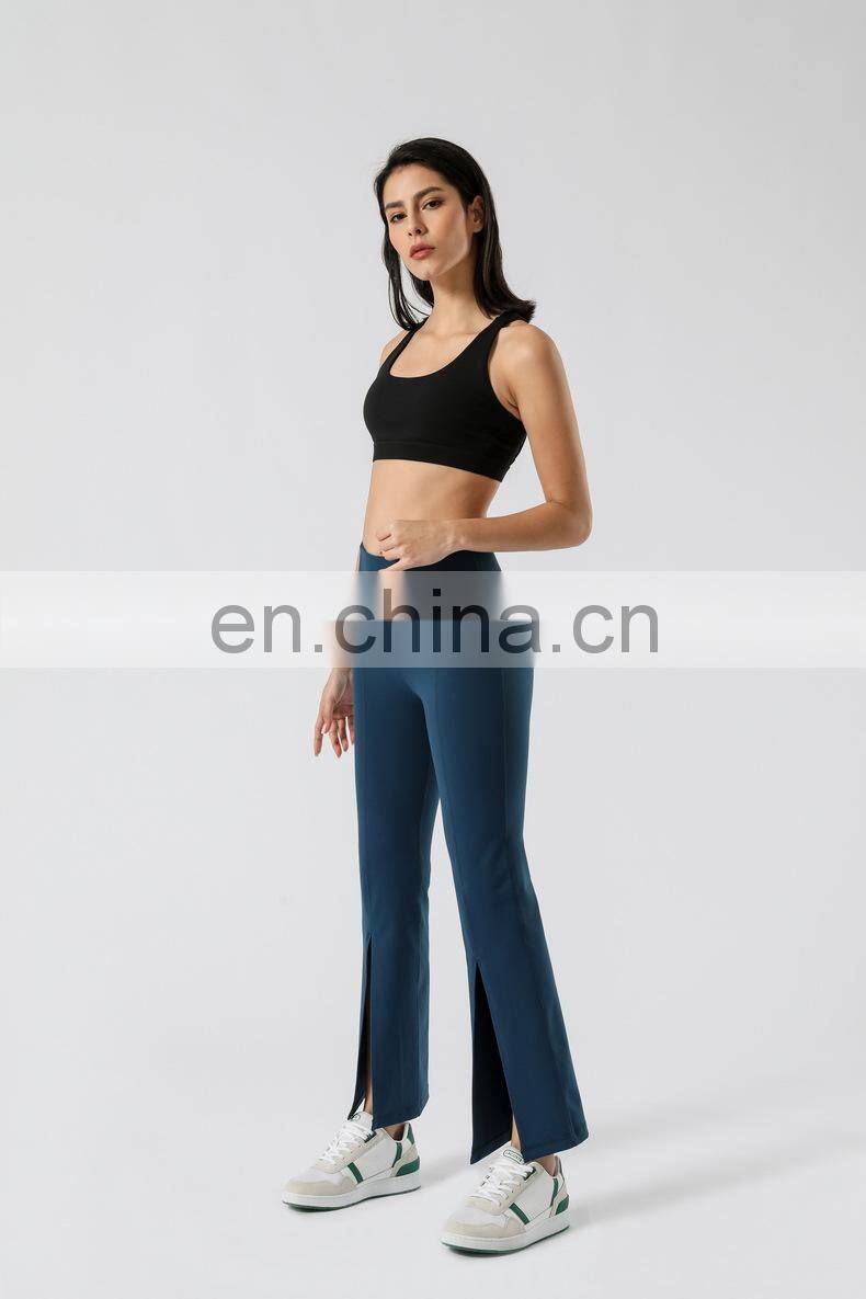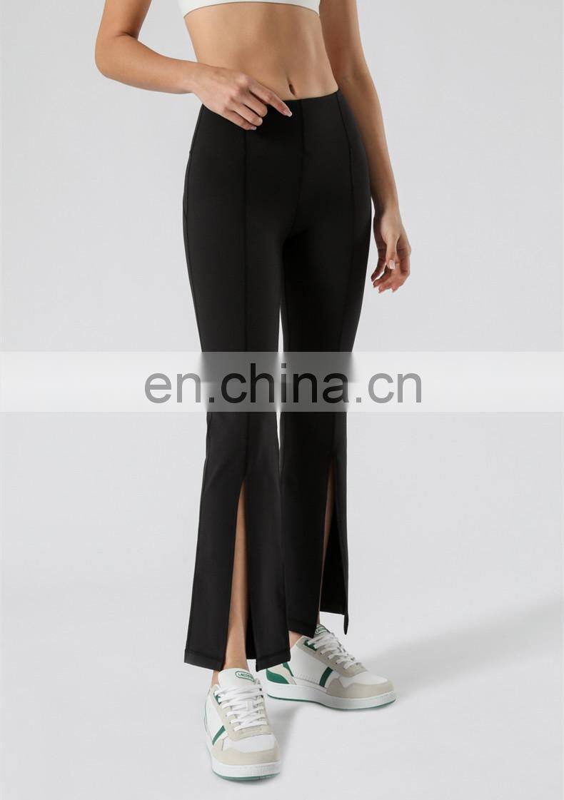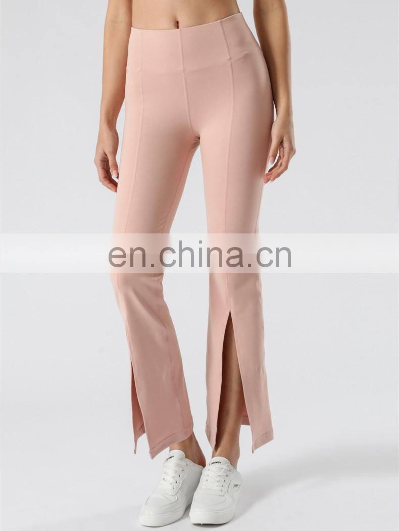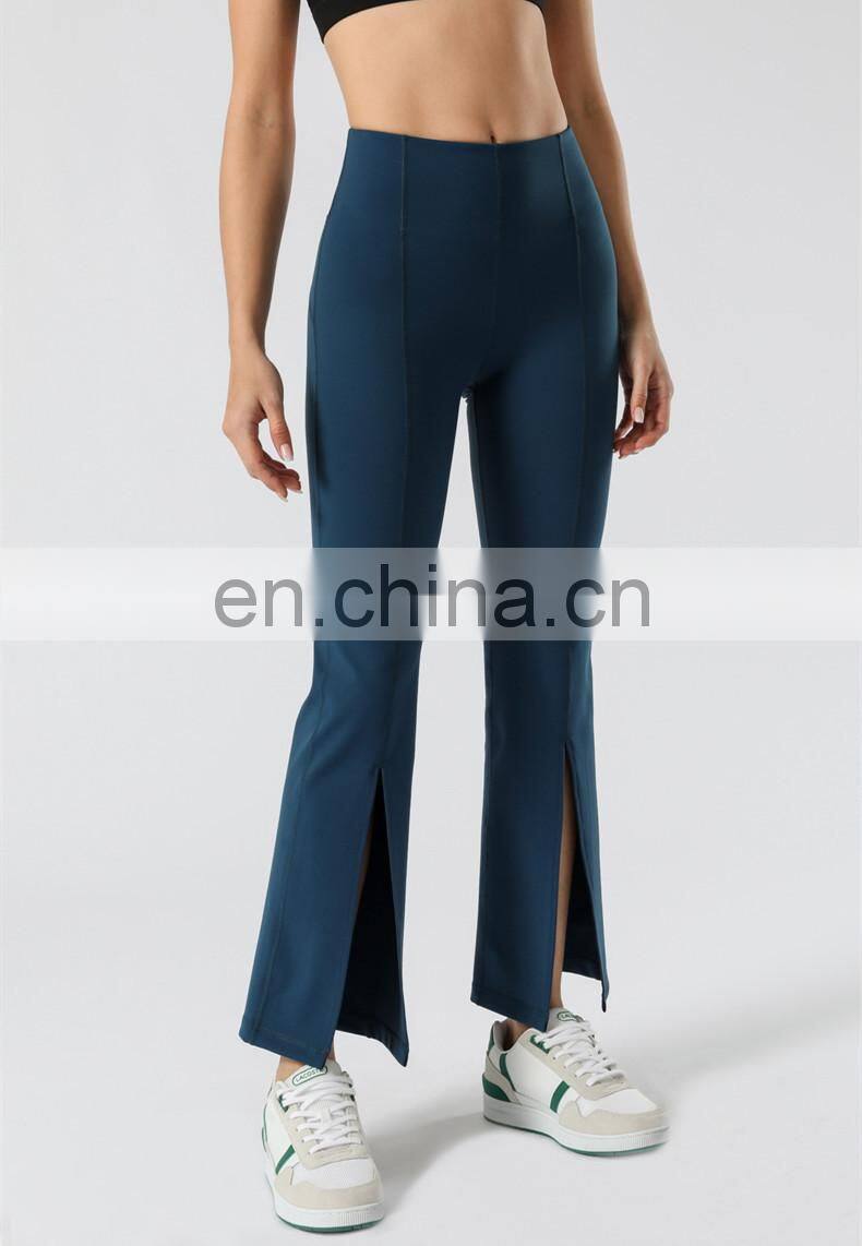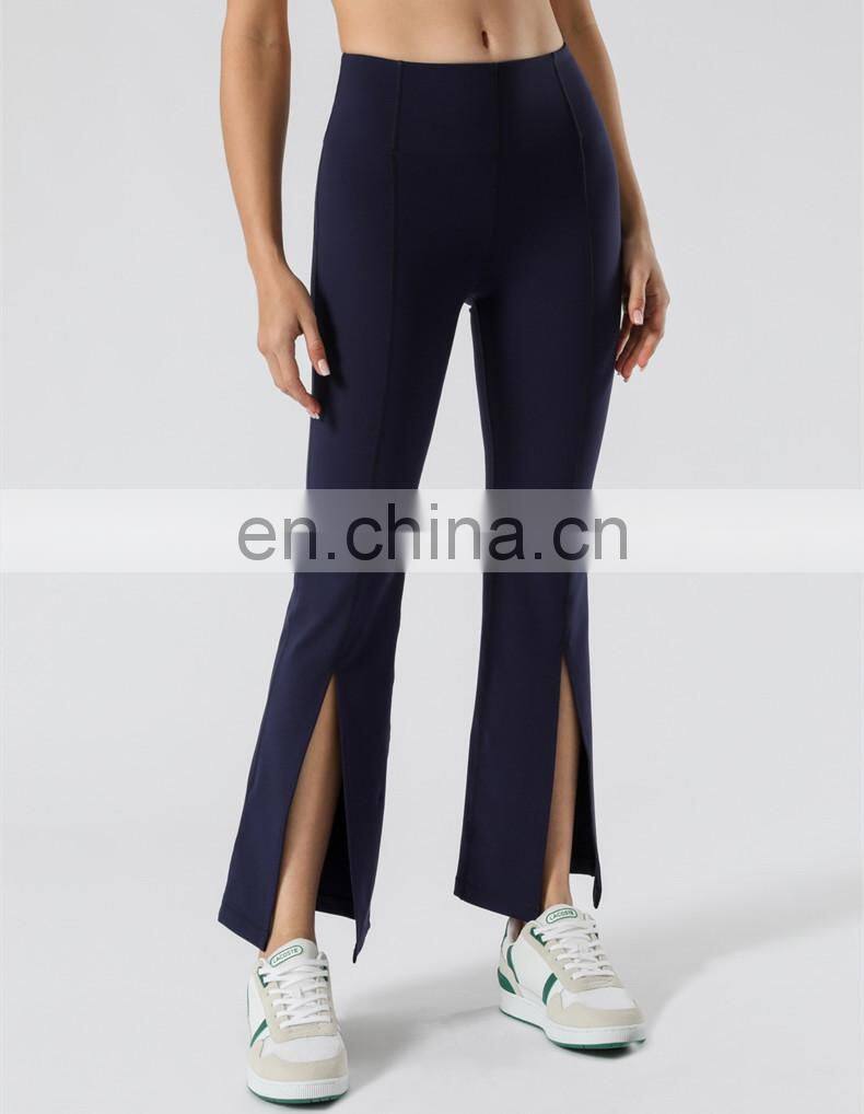 Fashion Naked Feeling Open Flared Wide Leg Yoga Pants Custom Evrlue Fabric Hot Sexy Gym Fitness Wear Dance Leggings For Women