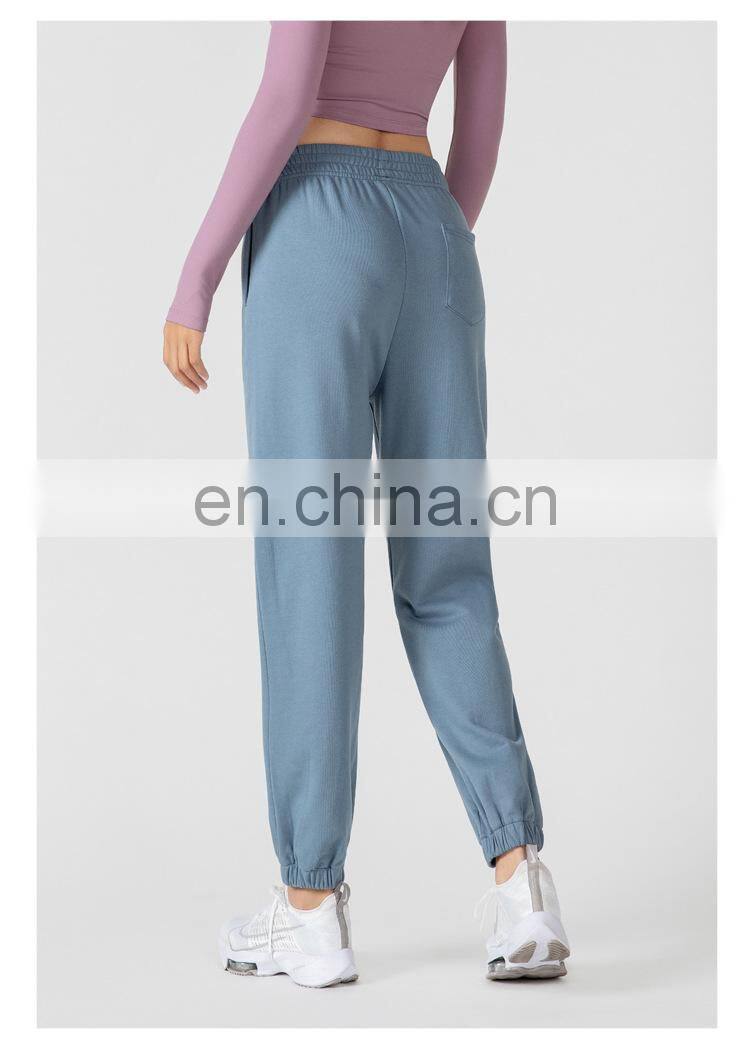 Drawstring High Waist Side Pocket Good Quality Training Sports Fitness Jogging Pants Ladies Casual Exercise Wear Jogger Pants