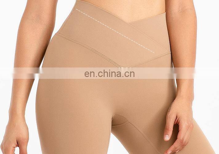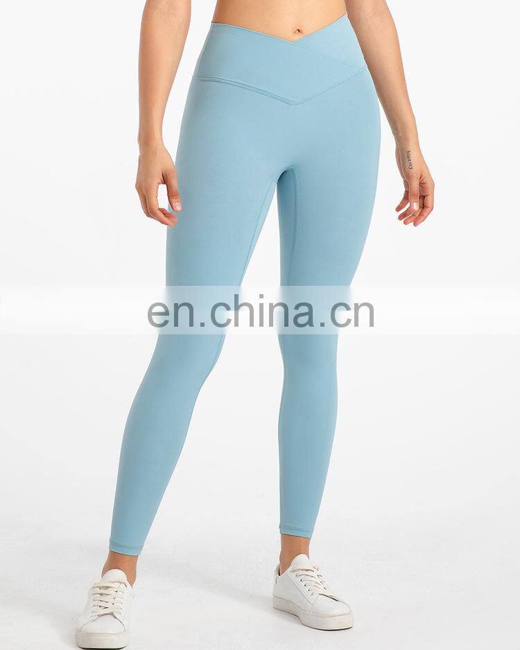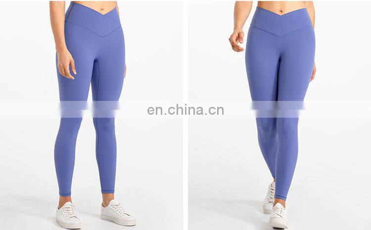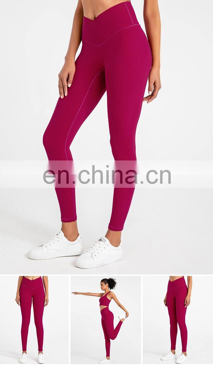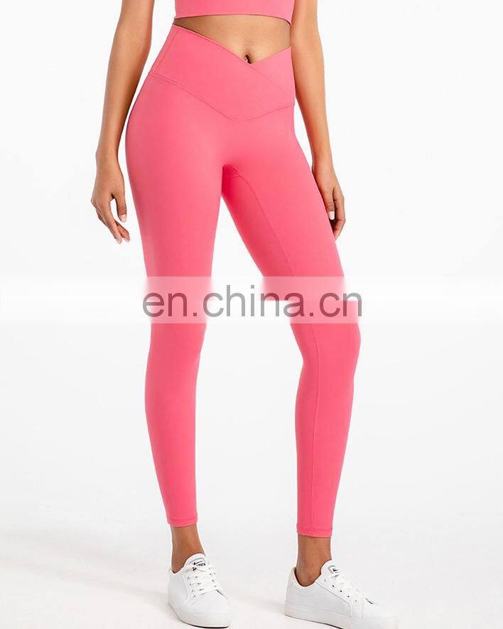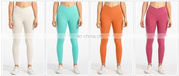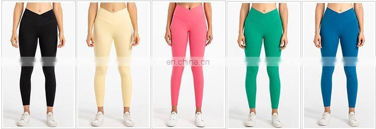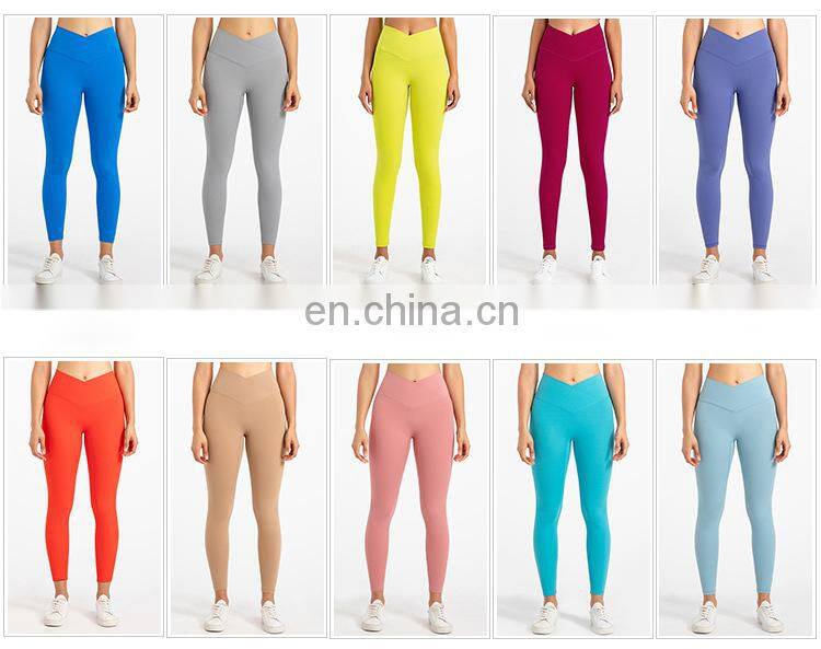 Ready To Ship Custom Logo 20 Neon Colors Yoga Leggings Cross Waistband High Waist Women Gym Sports Wear Yoga Tights Workout Wear