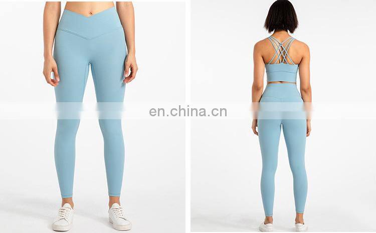 Wholesale V Back Gym Pants Tights High Waist Scrunch Butt Lifting Workout Running Quick Dry Seamless Yoga Leggings For Women