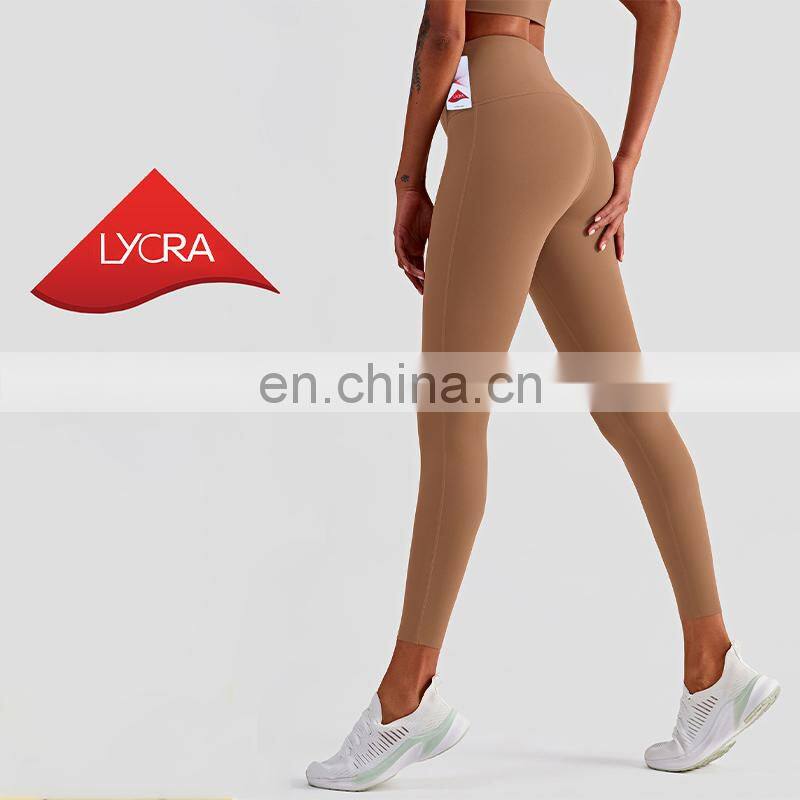 New Women High Waist Fitness Wear Yoga Leggings With Side Pockets Custom Running Tight Gym Wear Pants
