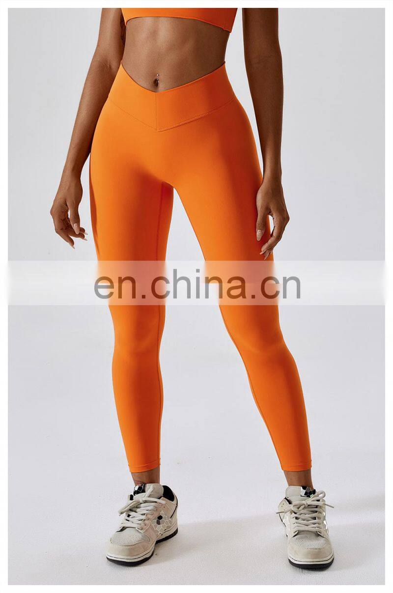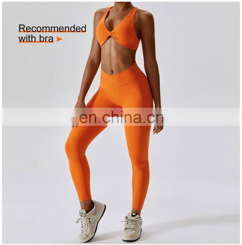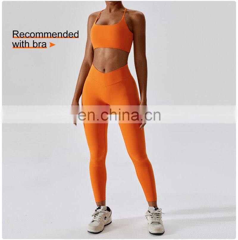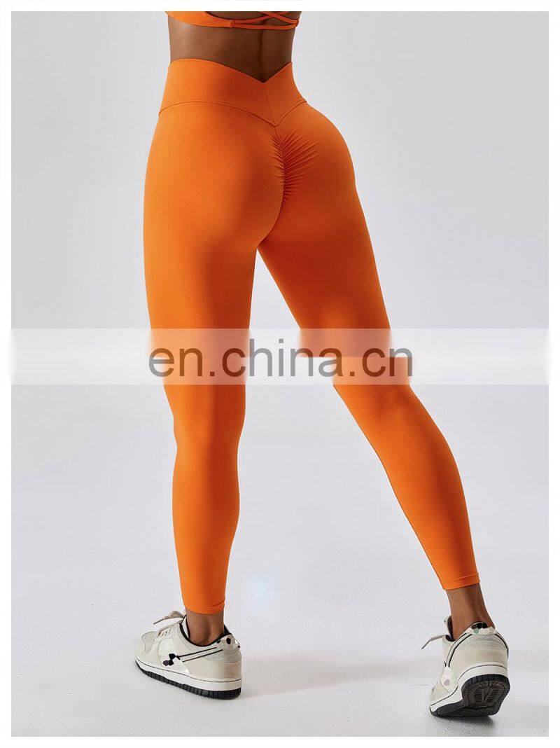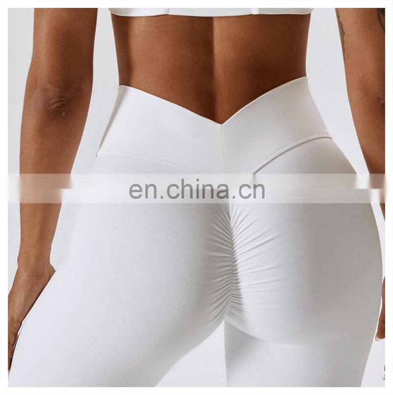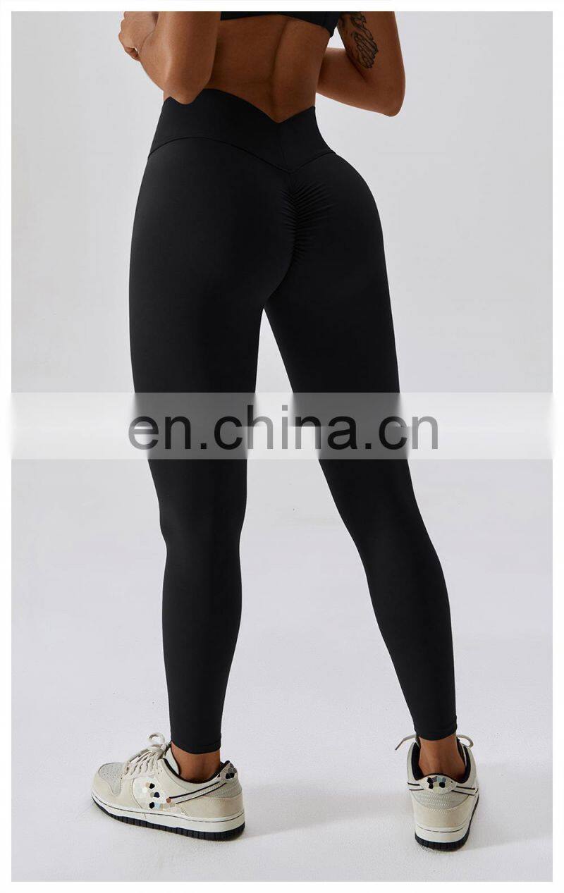 Wholesale V Back Gym Pants Tights High Waist Scrunch Butt Lifting Workout Running Quick Dry Seamless Yoga Leggings For Women