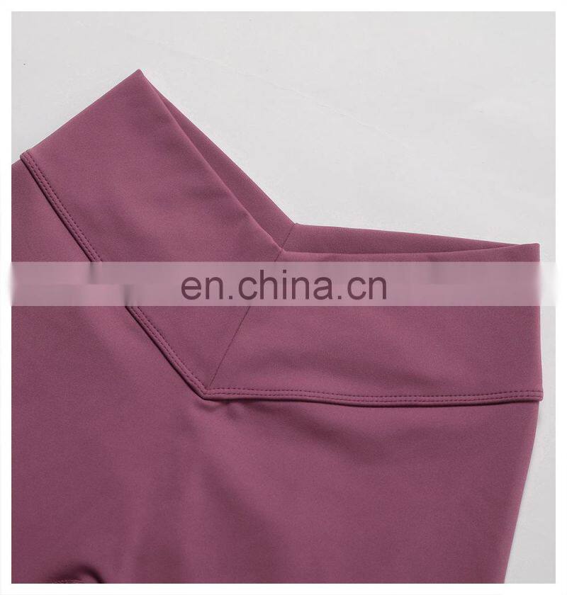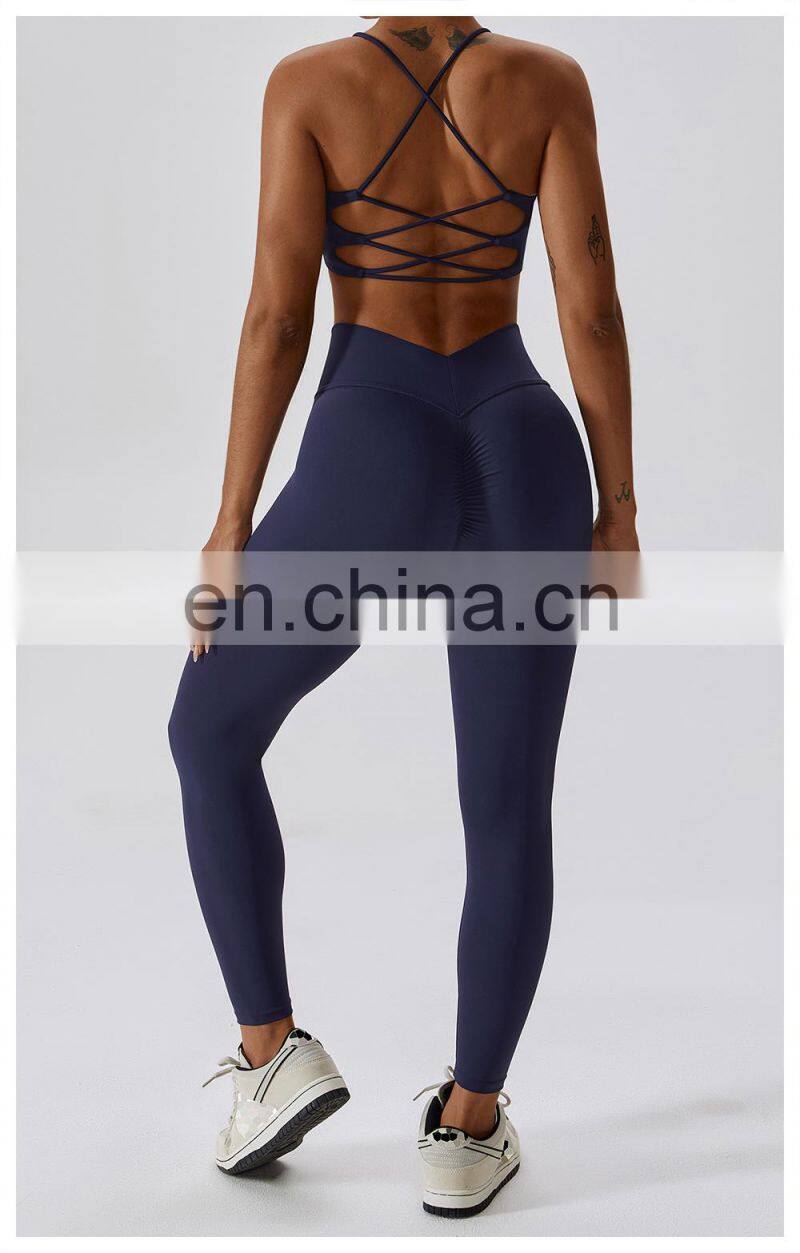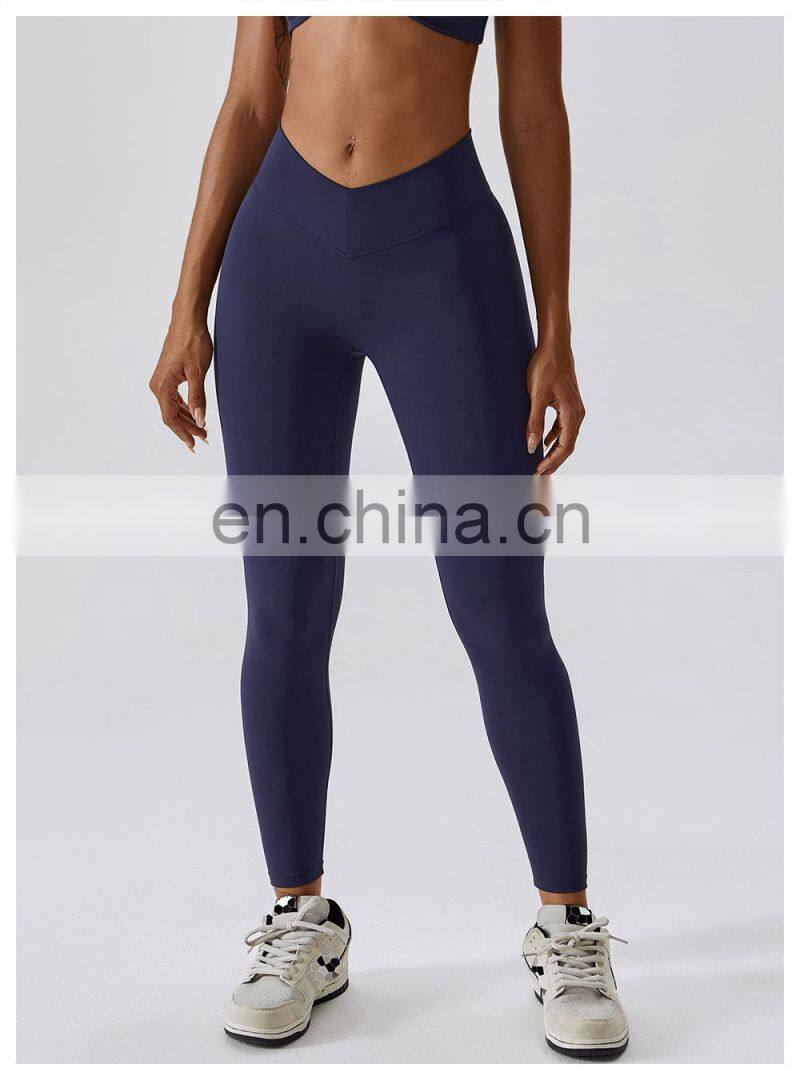 Custom Ladies Running Quick Dry Tights Yoga Pants Gym Fitness Legging Butt Lift V Cross Waist Ribbed Yoga Leggings For Women