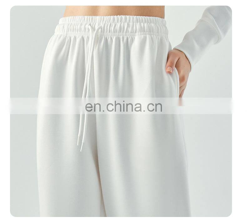 Custom Drawstring Sweatpants Windproof Warmth Running Fitness Trousers Loose Straight Leg Jogger Pants Women Fleece Sweatpants