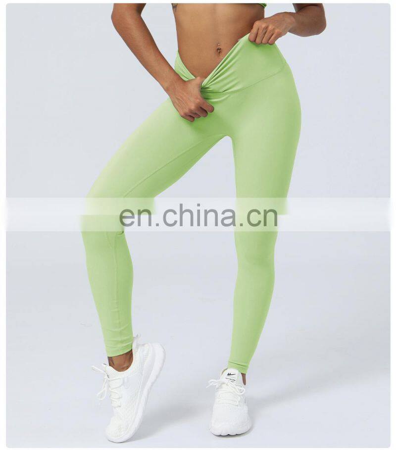 Running Wear Quick Dry Sport Legging Custom Gym Fitness Tights Women Cross Waistband Pants Butt Lift High Waist Yoga Leggings