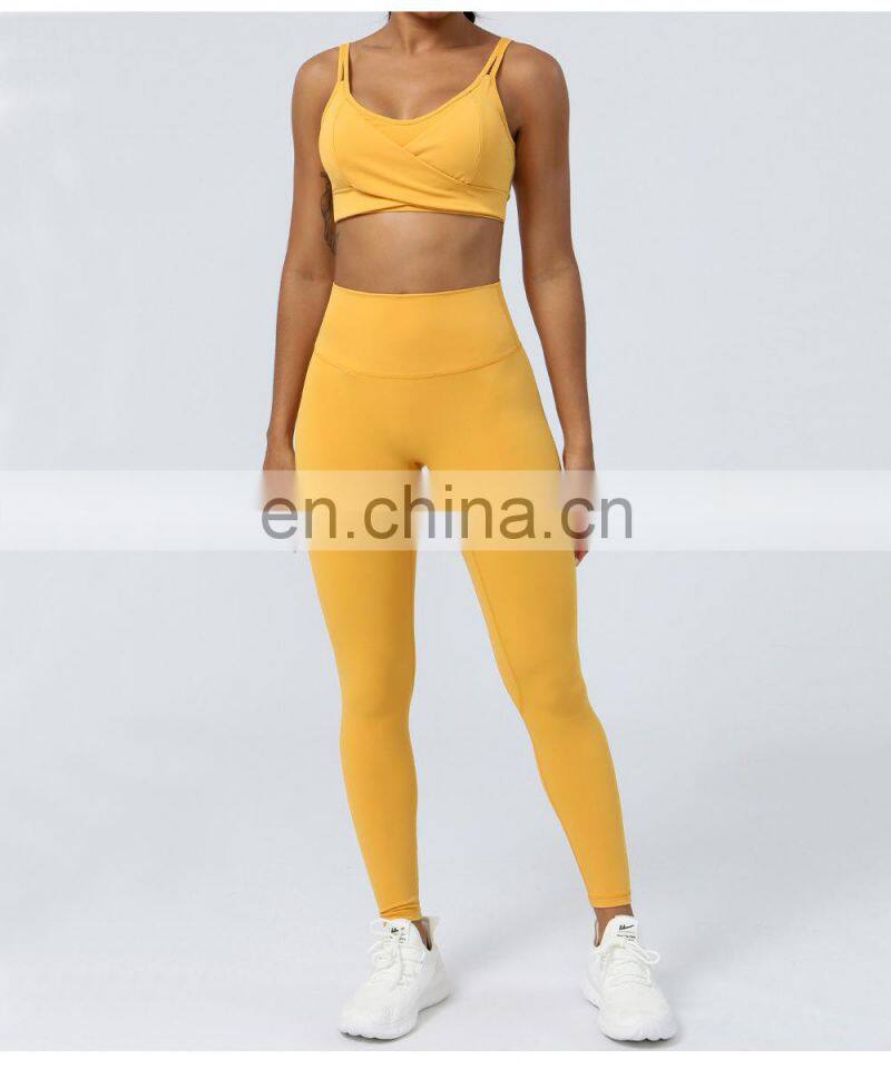 High Quality Sexy Running Leggings Custom Workout Wear Tights V Cross Waist Butt Pants Gym Fitness Yoga Leggings For Women