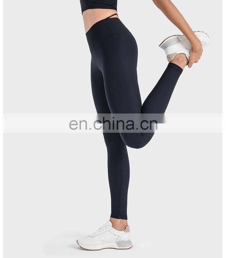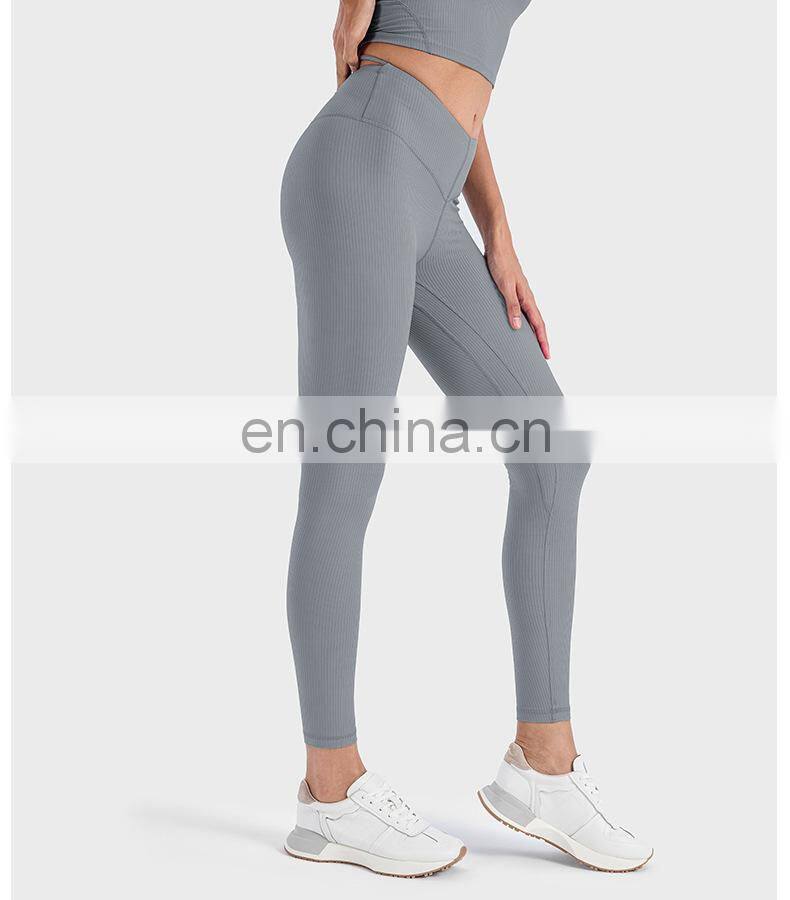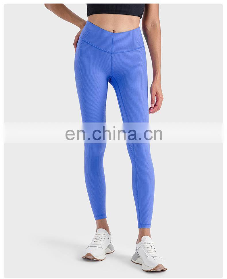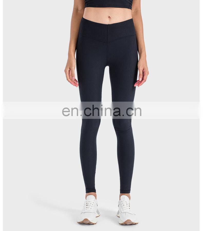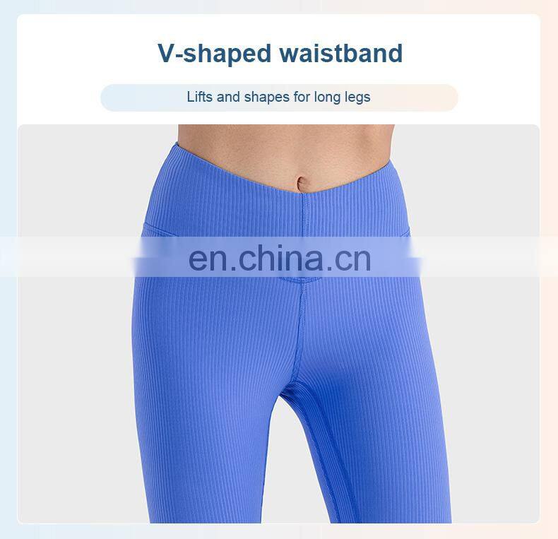 Ribbed Legging Custom Push Up Tights Running Workout Gym Fitness Pants Women High Elastic V-Shape Waist Butt Lift Yoga Leggings