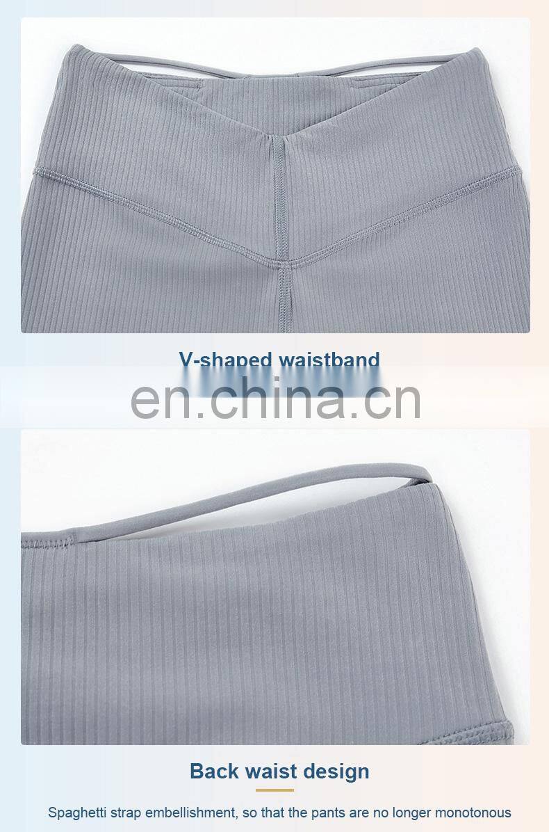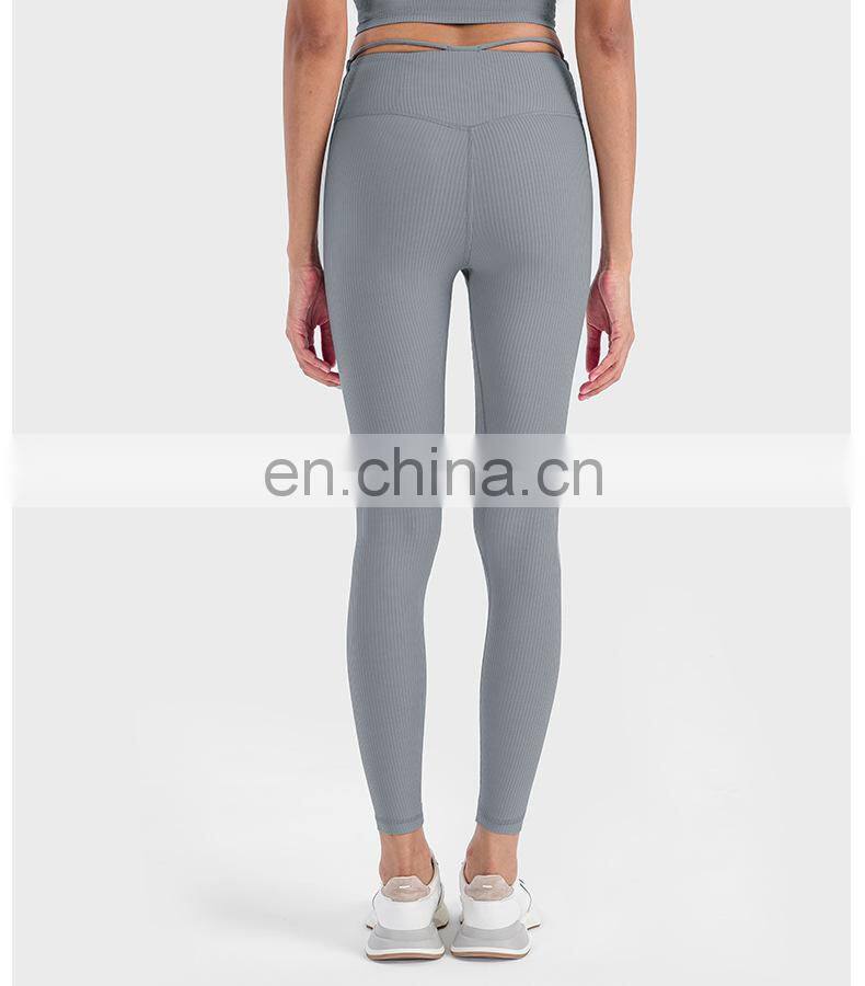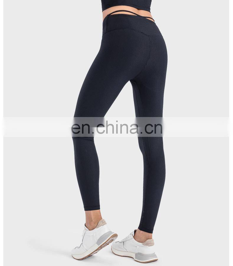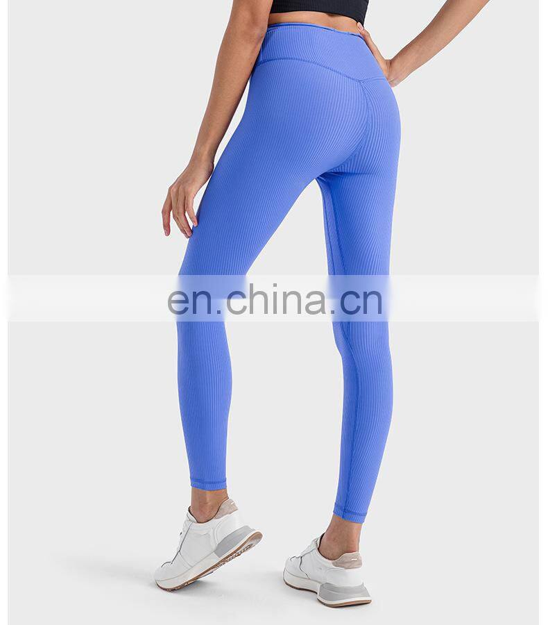 Ribbed Legging Custom Push Up Tights Running Workout Gym Fitness Pants Women High Elastic V-Shape Waist Butt Lift Yoga Leggings