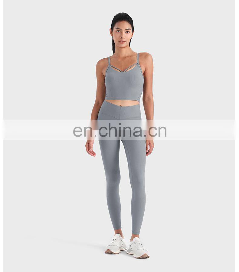 High Quality Sexy Running Leggings Custom Workout Wear Tights V Cross Waist Butt Pants Gym Fitness Yoga Leggings For Women