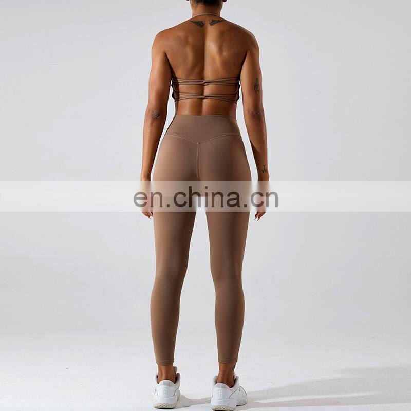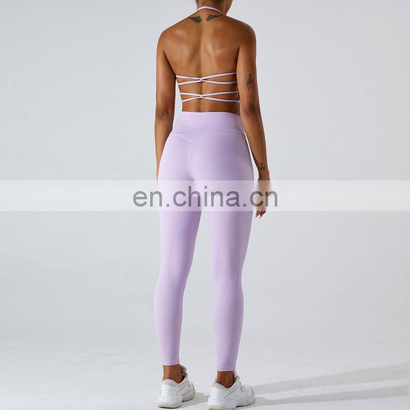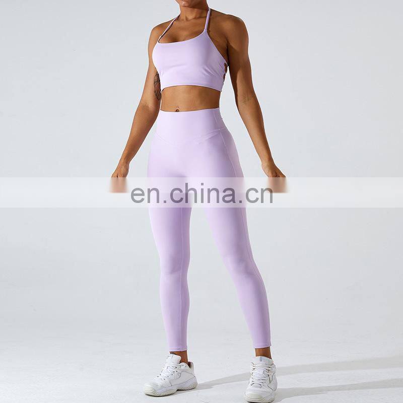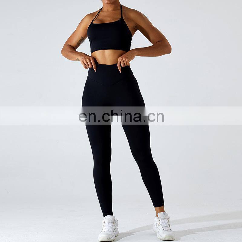 Latest Design Wholesale 2/3 Piece U Back Sports Bra High Waist V Leggings Casual Sweatpants Yoga Fitness Gym Suit Set For Women