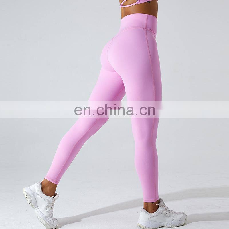 Breathable Wholesale Sports Tights Workout Wear High Waist Pants Gym Fitness No T-Line Butt Lift Pants Yoga Leggings For Women