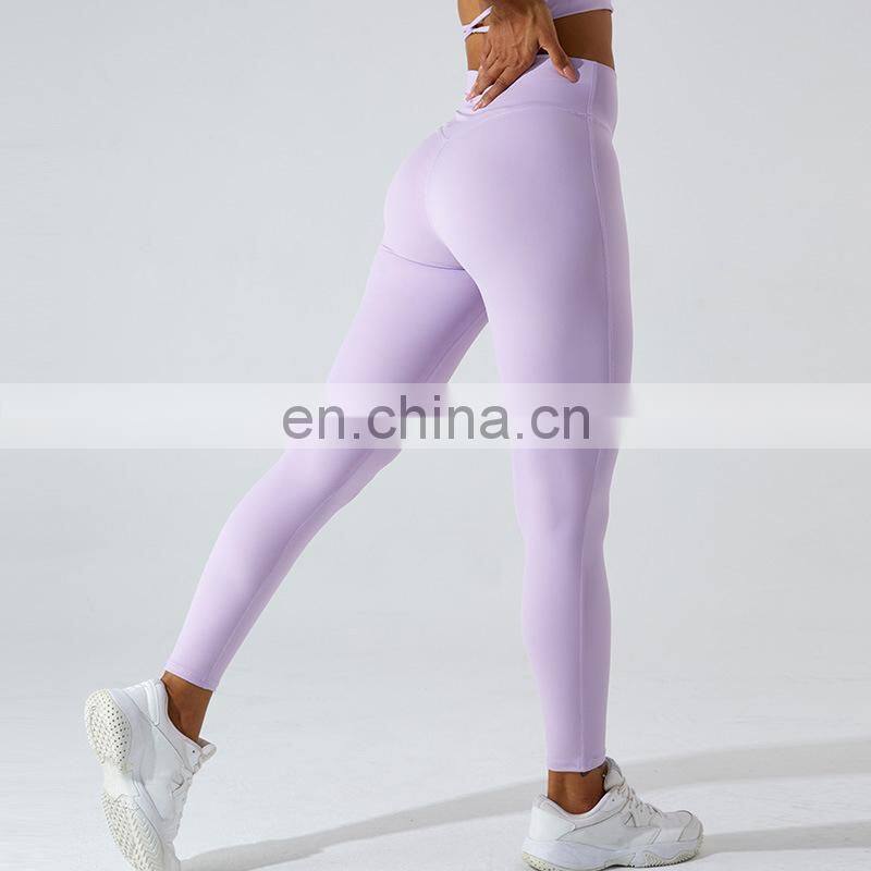 High Quality Sexy Running Leggings Custom Workout Wear Tights V Cross Waist Butt Pants Gym Fitness Yoga Leggings For Women