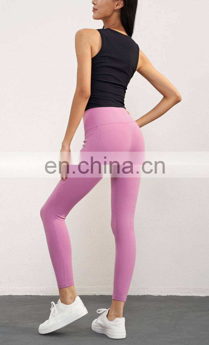 Double Side Pockets Anti-Rolling Sports Leggings Tights Custom Gym Fitness Pants High Waist Butt Lifting Yoga Leggings For Women