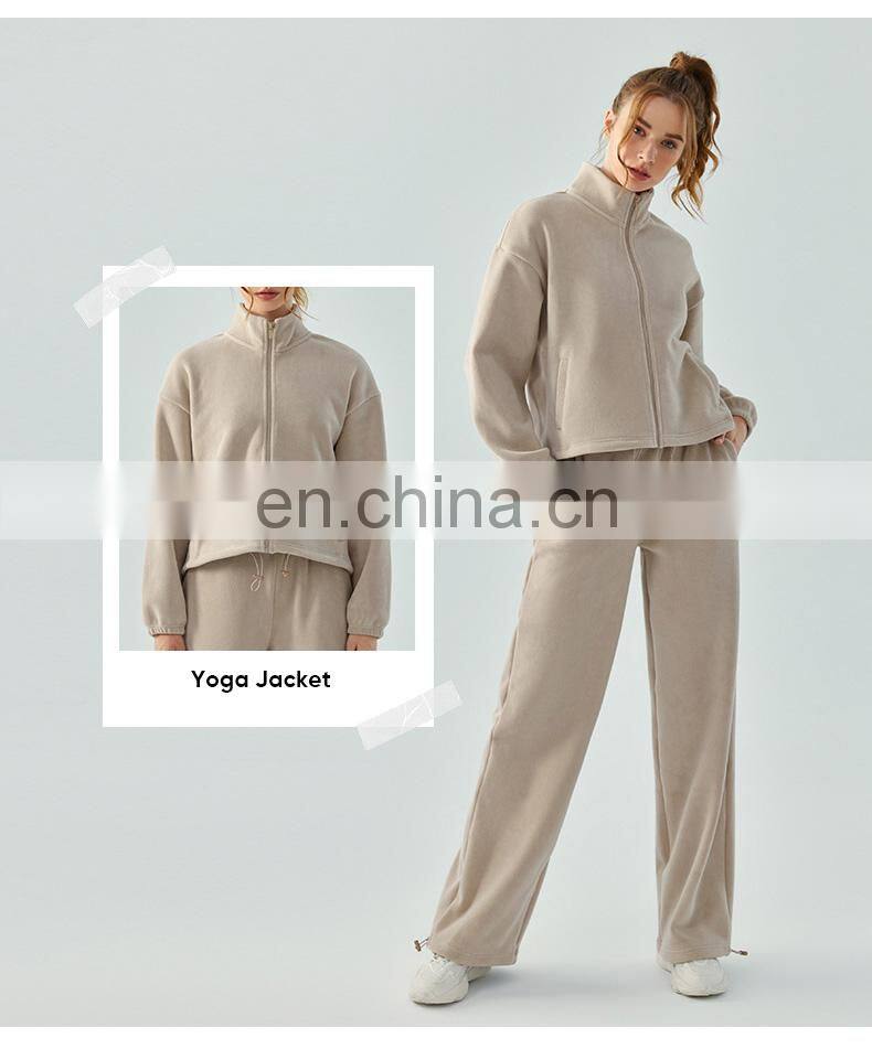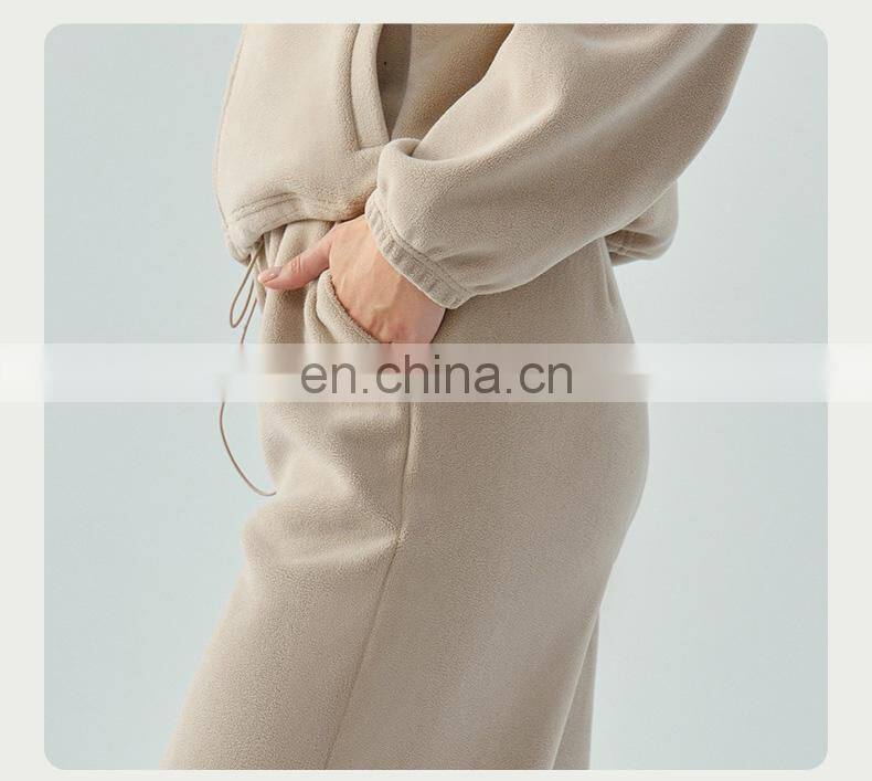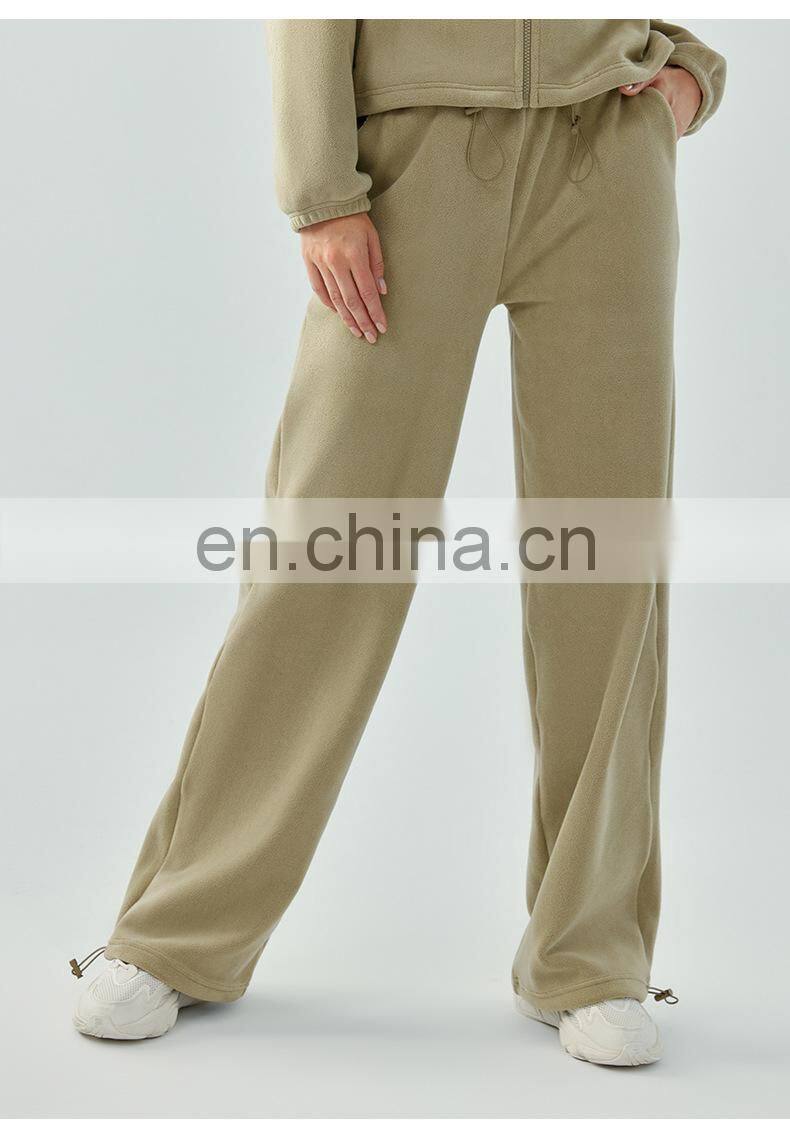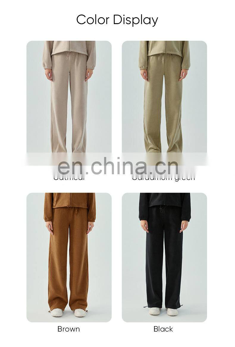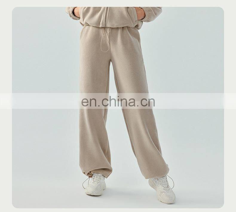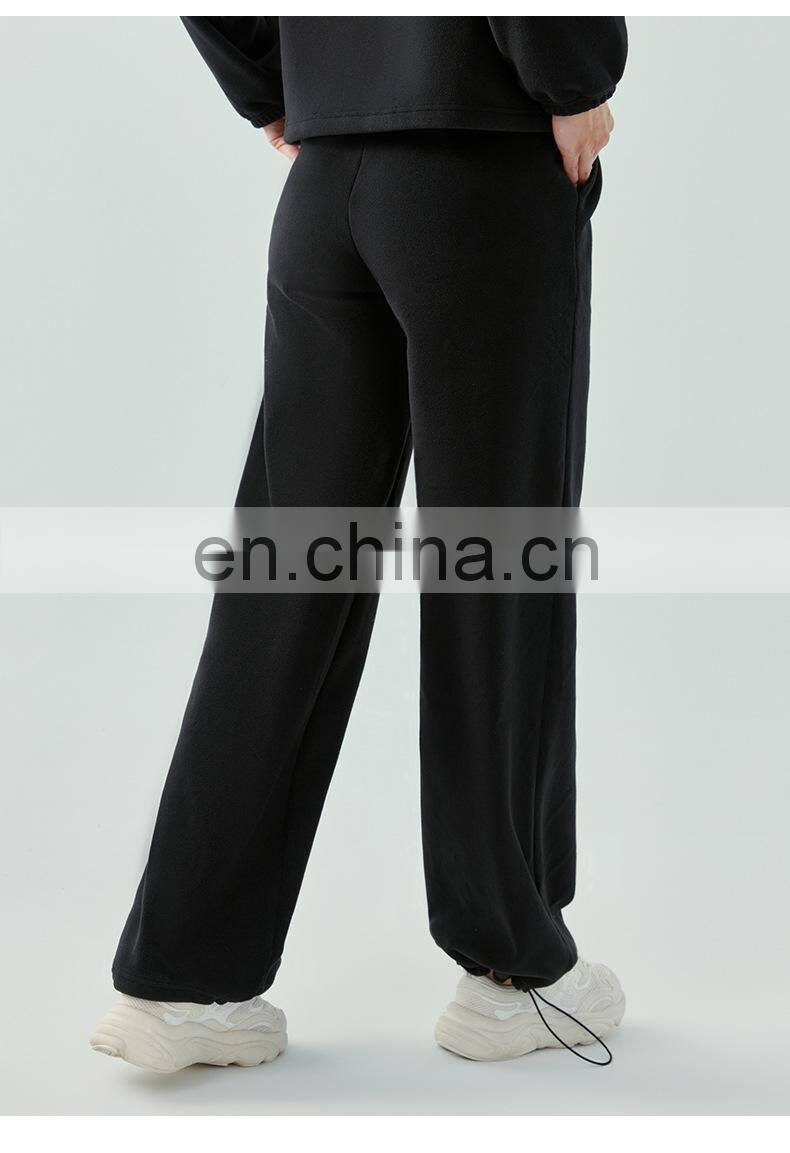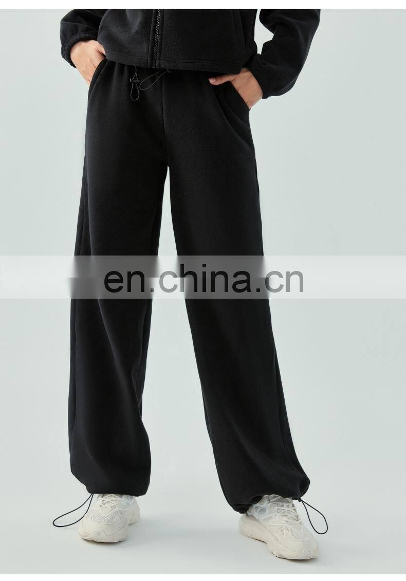 Home > Products > Fitness Yoga pants > Custom Drawstring Sweatpants Windproof Warmth Running Fitness Trousers Loose Straight Leg Jogger Pants Women Fleece Sweatpants